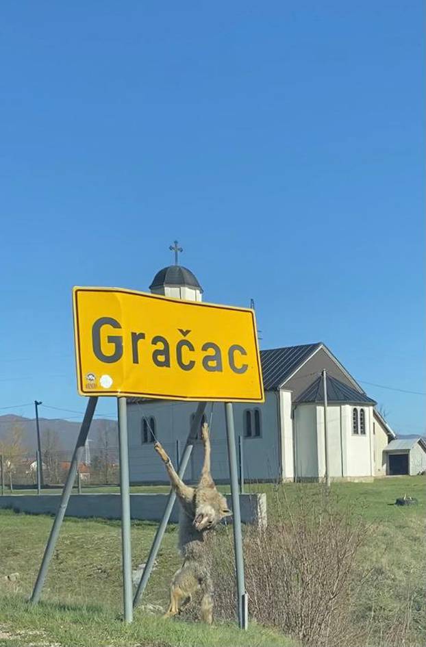Jutros oko 8 sati, mještane Gračaca šokirao je prizor na samom ulazu u mjesto. Naime, netko je, vjerojatno, usred noći, objesio vuka ispod table Gračac na samoj magistrali.