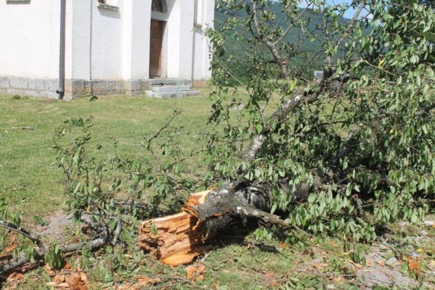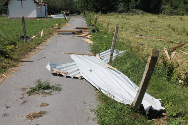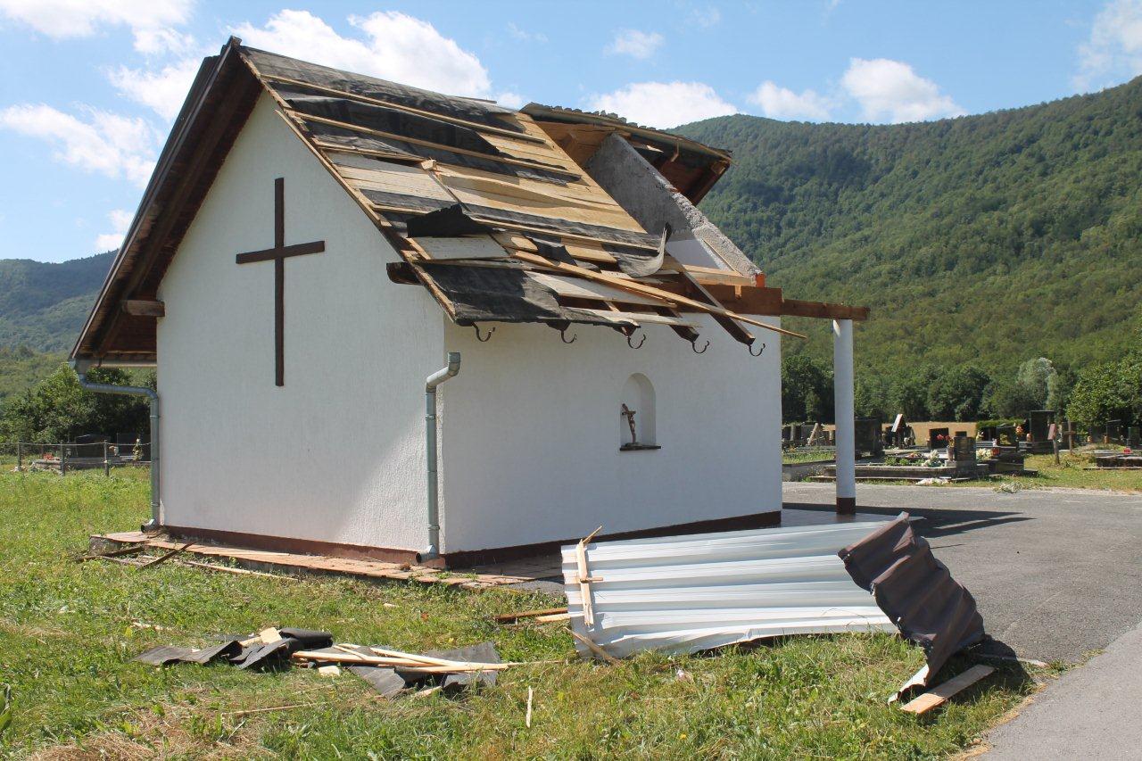 -Eno tamo mi je krov, u šumi. Odmotalo limu i samo je bacilo, jada nam se postariji mještanin sa OPG-a Uzelac. Ukupne štete bit će velike jer je kiša ponegdje sasvim uništila tek spremljeno sijeno. Rupe na krovovima vidjeli smo na desetak objekata u središtu Bužima. Ipak je na nagore prošla mrtvačnica na mjesnom groblju. Vjetar je podigao i odnio krovnu konstrukciju i krov. Jedan poveći komad lima odnesen je oko 100 metara od mrtvačnice. Najveći dio krova ipak je završio u obližnjoj zobi, koja je sasvim povaljena i teško da će se imati što žeti. Neki mještani govore da su u odsjaju grmljavine noćas ugledali pijavicu što se „prošetala središtem Bužima. O snazi vjetra svjedoče i prepolovljena i otkinuta stabla. Grad Gospić već je poslao ekipe na teren i štete se još utvrđuju.