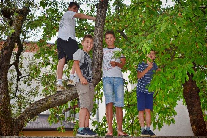 Blijedo-crveni plodovi još nisu sasvim sazreli, ali to dječacima očito ne smeta da ih beru i uživaju u ovoj maloj avanturi. Ljeto je zacarilo i tko im bilo što može zamjeriti?!?
