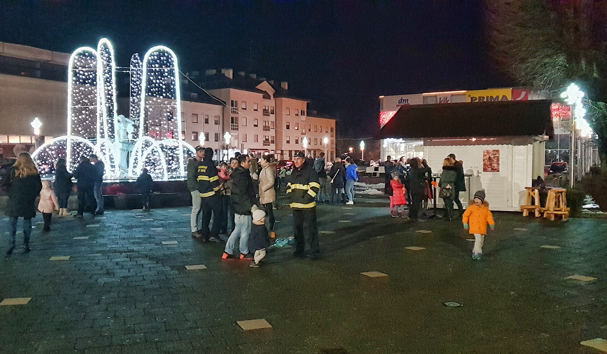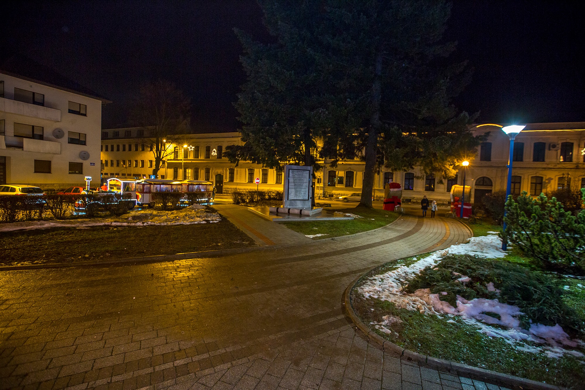 Park pokraj Pučkog učilišta sinoć je bio potpuno prazan. Jedini znak da se ovdje nešto događa bio je vlakić “BUBI” koji je i večeras vozio djecu po gradu.  Nakon zabave u POU po programu je trebalo uslijediti puštanje svjetlećih lampiona sa trga Stjepana Radića…
