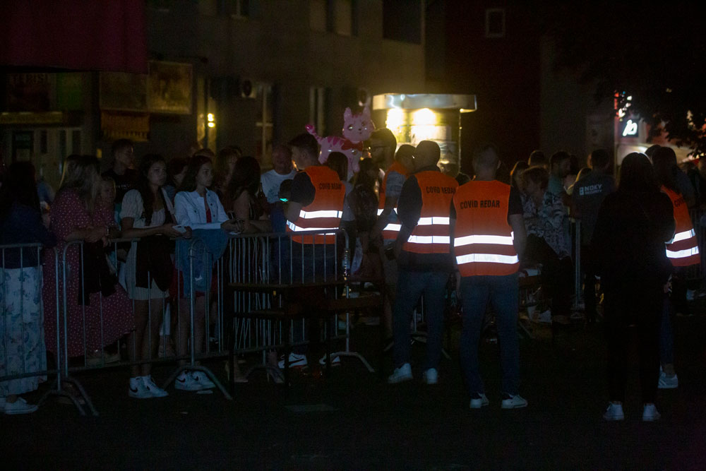 Na prostor ispred pozornice mogli su prići samo oni koji su imali potvrde o cijepljenju protiv COVID-19. Nekolicina covid-redara nisu nikome htjeli (niti smjeli) praviti ustupke pa se najbliže pozornici našlo 500-600 fanova, dok su ostali koncert pratili iz solidne daljine.