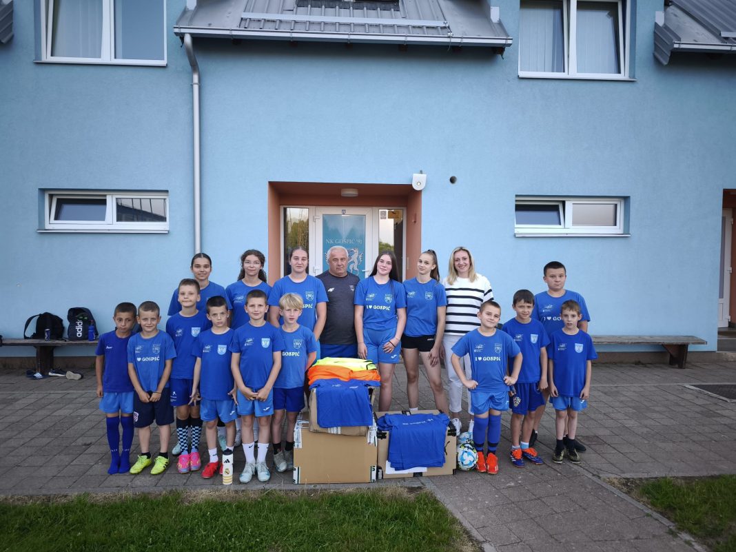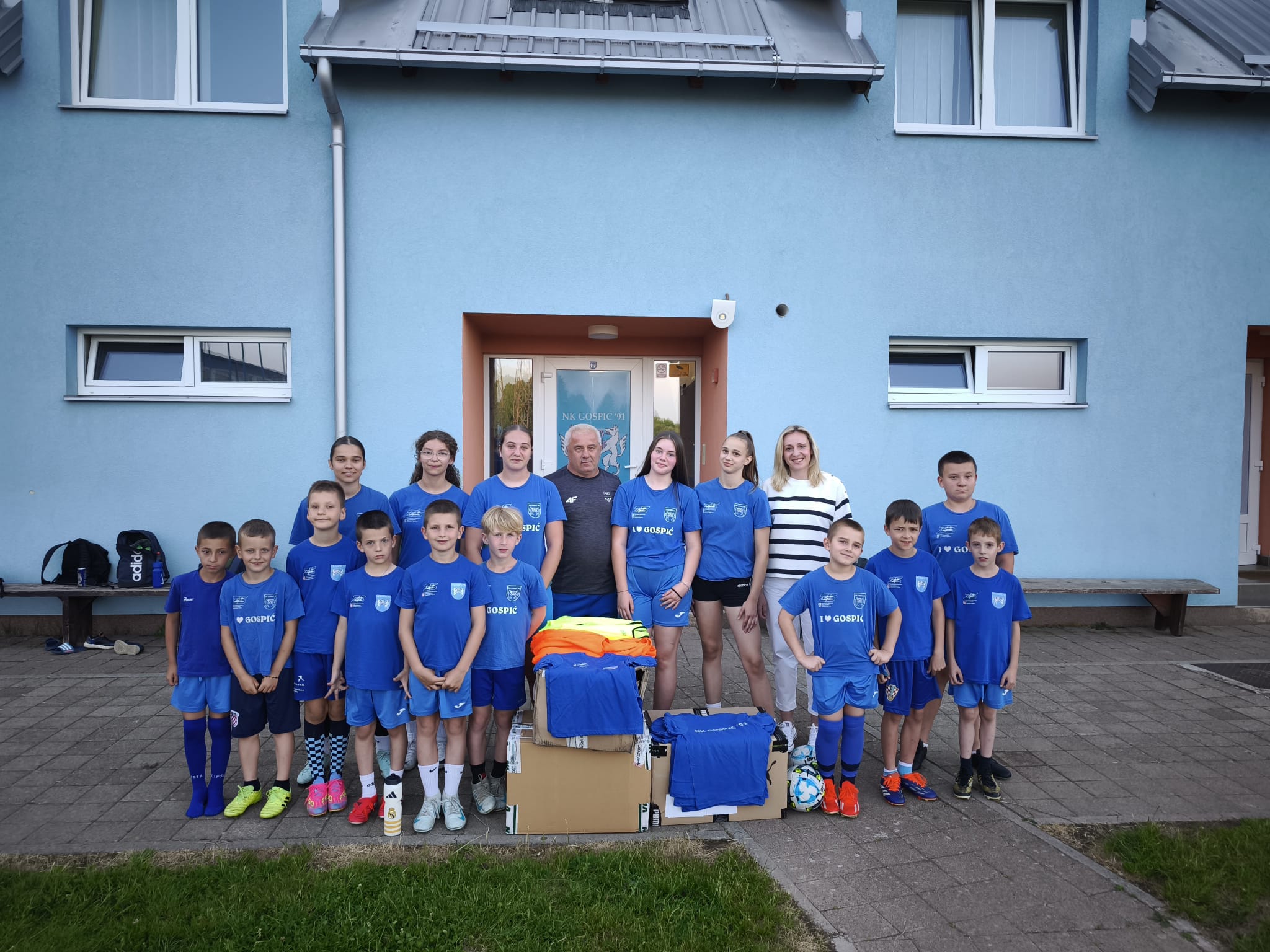 U ime NK Gospić ’91 donaciju majica i sportske opreme preuzeo je voditelj škole nogometa Zoran Mrkonjić i trener Ivan Škulj u pratnji mladih nogometašica i nogometaša koji su s oduševljenjem dočekali ovaj vrijedan poklon.