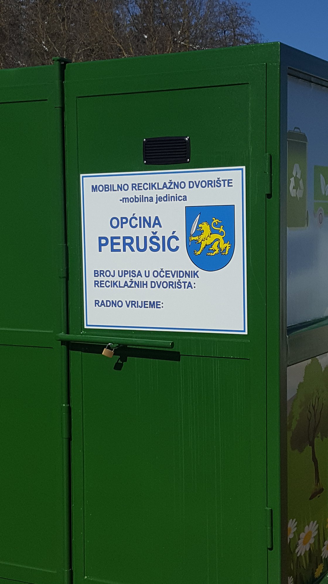 Općini Perušić i komunalnom poduzeću Perušić d.o.o. je nakon provedene Javne nabave i sklapanja Ugovora danas isporučeno Mobilno reciklažno dvorište za potrebe Općine Perušić i njezinih naselja. Mobilno reciklažno dvorište će biti upisano u očevidnik Mobilnih reciklažnih dvorišta i nakon toga ce biti napravljen plan gdje će reciklažno dvorište biti raspoređeno na prostoru općine Perušić i u kojemu vremenu. Stanovnici ce moći reciklirati i besplatno predati čak 35 vrsta otpada koje će preuzimati djelatnik komunalnog poduzeća u navedenom vremenu.