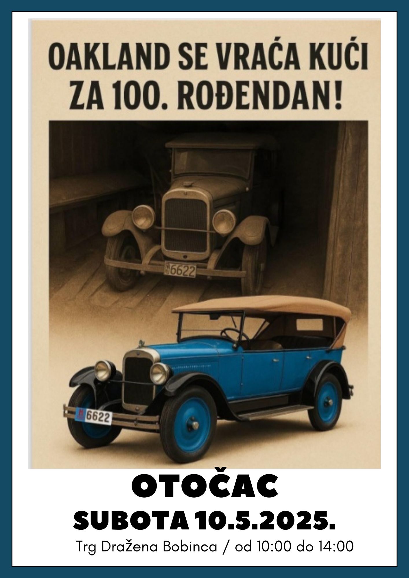 Ove godine, spomenuti “Oakland True Blu Six” slavi svoj 100. rođendan zbog čega će se ponovno provozati ulicama grada Otočca, a svi zaljubljenici u oldtimer vozila kao i ostali zainteresirani moći će ga vidjeti uživo na Trgu Dražena Bobinca u Otočcu u subotu 10. svibnja 2025. od 10 do 14 sati, nakon čega će se Oakland zajedno s još nekoliko oldtimer vozila, čiji su vlasnici članovi Hrvatskog odltimer saveza i Udruge starodobnih vozila „Klakson” provozati Otočcem i okolicom.