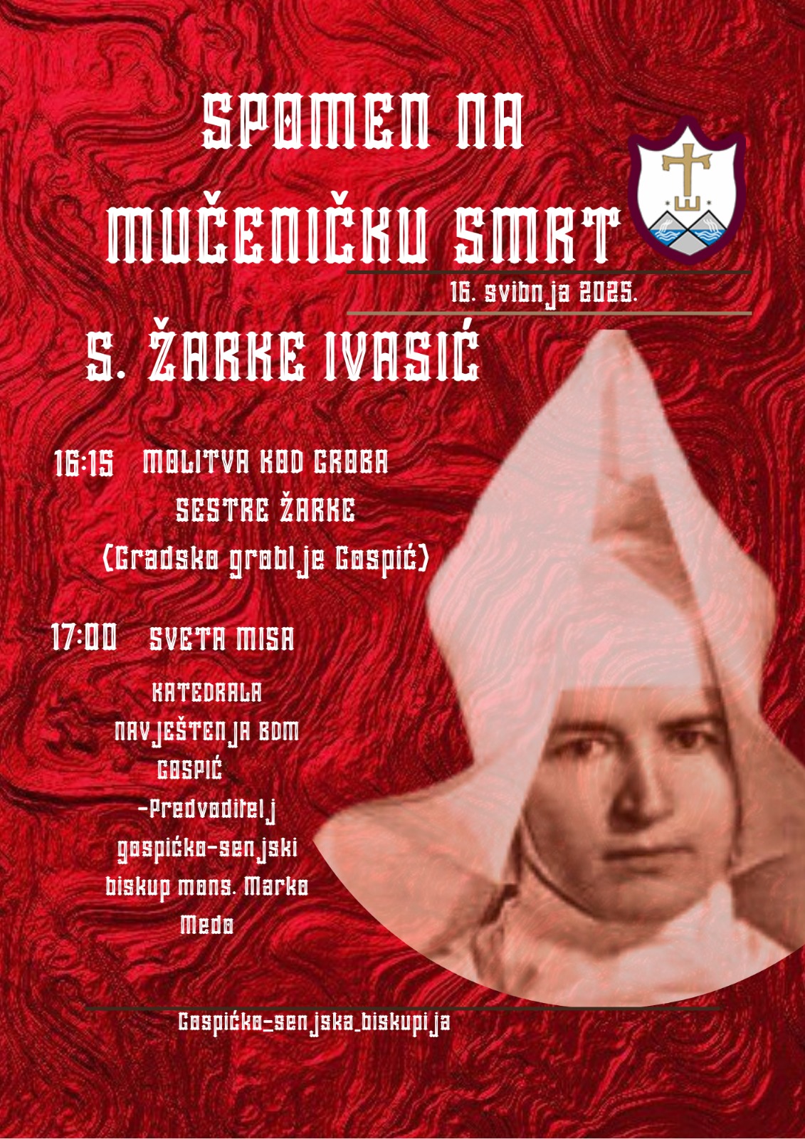 U četvrtak, 16. svibnja 2025. godine, u Gospiću će se obilježiti spomen mučeničke smrti sestre Žarke Ivasić, redovnice koja je život izgubila zbog svoje vjernosti Bogu i Crkvi.