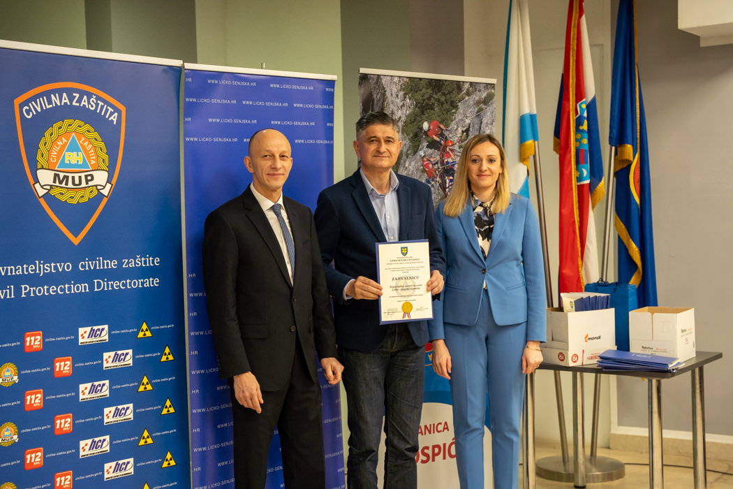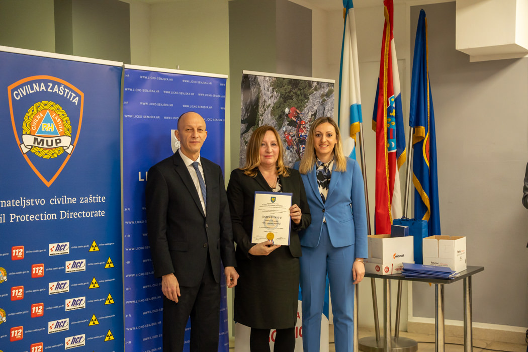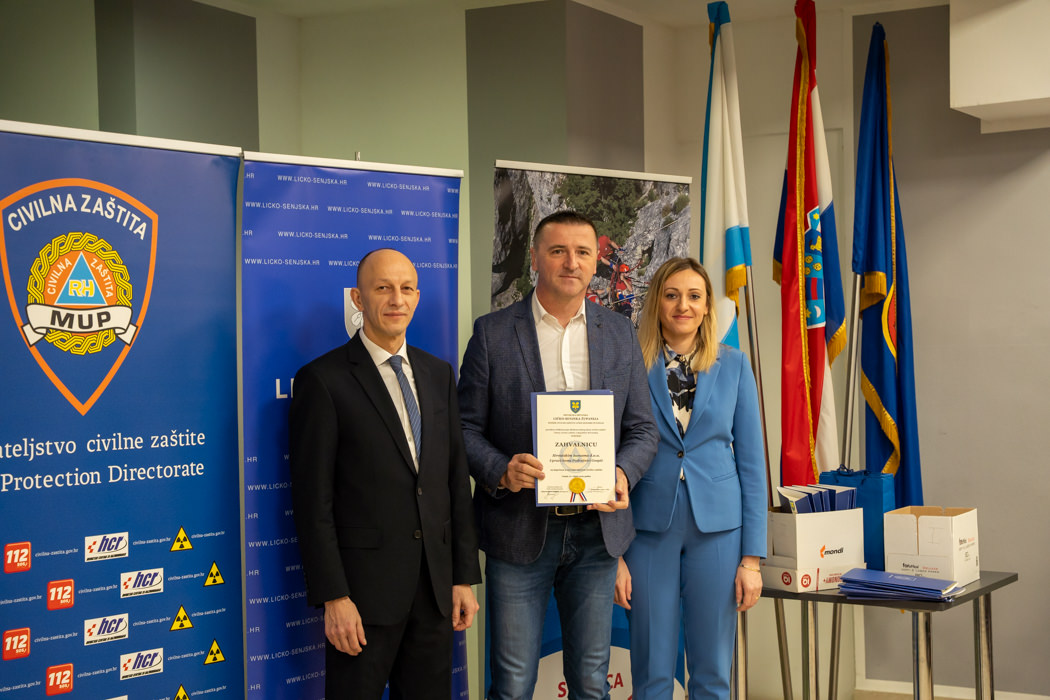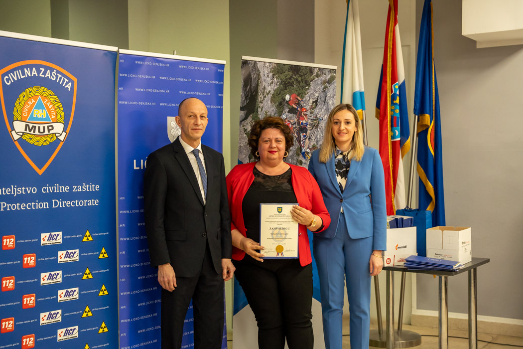 Posebno priznanje za doprinos u razvoju prekogranične suradnje u sustavu civilne zaštite dodijeljeno je Kantonalnoj upravi civilne zaštite Unsko-sanskog kantona (BiH). Zahvalnice su primile i vatrogasne zajednice gradova Gospića, Otočca, Novalje i Senja, kao i javne vatrogasne postrojbe Gospić, Senj i Plitvička jezera te brojna dobrovoljna vatrogasna društva s područja županije, uključujući DVD-ove Otočac, Sinac, Kuterevo, Karlobag, Krasno, Vrhovine, Brinje, Senj, Sveti Juraj, Novalja, Lun, Barbati, Velebit Lovinac, Udbina, Plitvička jezera, Perušić, Pazarišta i Donji Lapac. Također, priznanja su dodijeljena gradskim i općinskim društvima Crvenog križa iz Gospića, Otočca, Senja, Novalje, Plitvičkih jezera i Donjeg Lapca.
