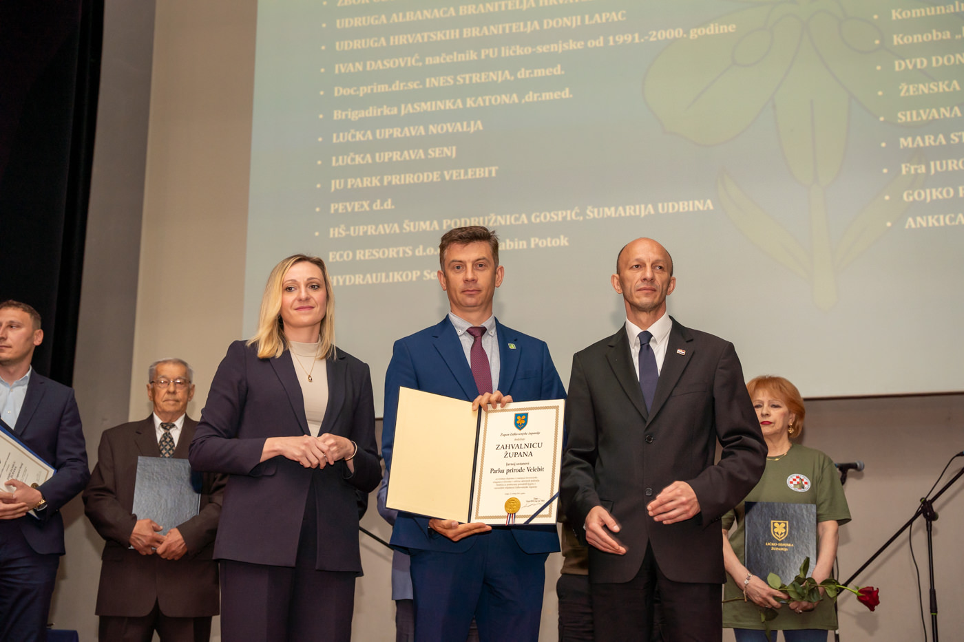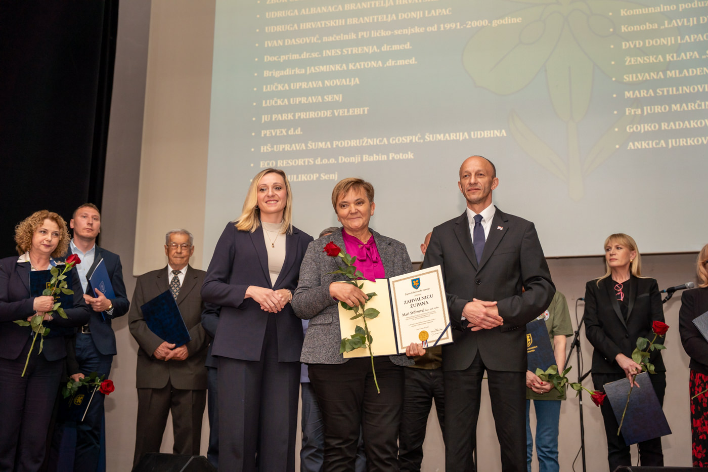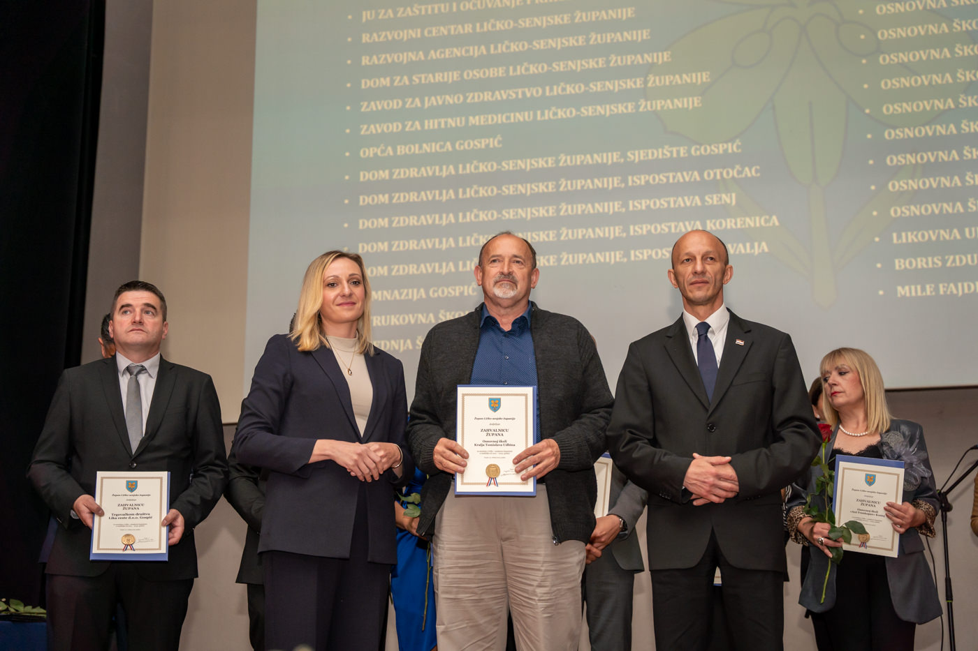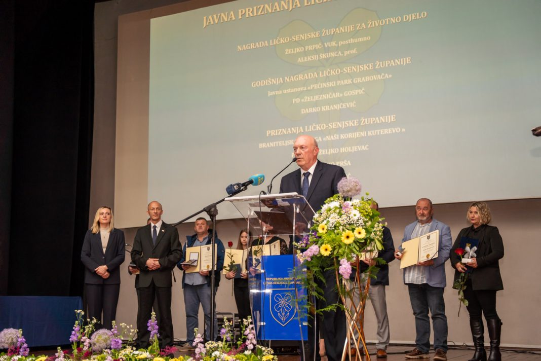 Priznanja Ličko-senjske županije dodjeljena su braniteljskoj udruzi “Naši korijeni Kuterevo”, Željku Holjevcu, Zdravku Prši i Jeleni Benčić, dok su Godišnje nagrade Ličko-senjske županije preuzeli predstavnici za JU “Pećinski park Grabovača”, Planinarsko društvo “Željezničar” Gospić te Darko Kranjčević.
