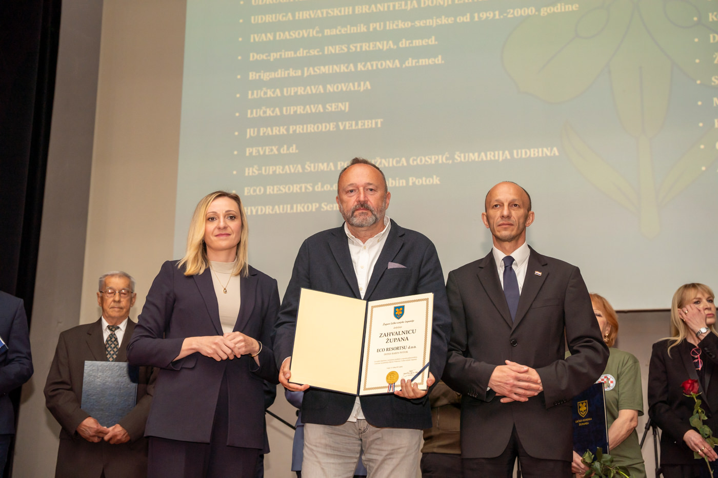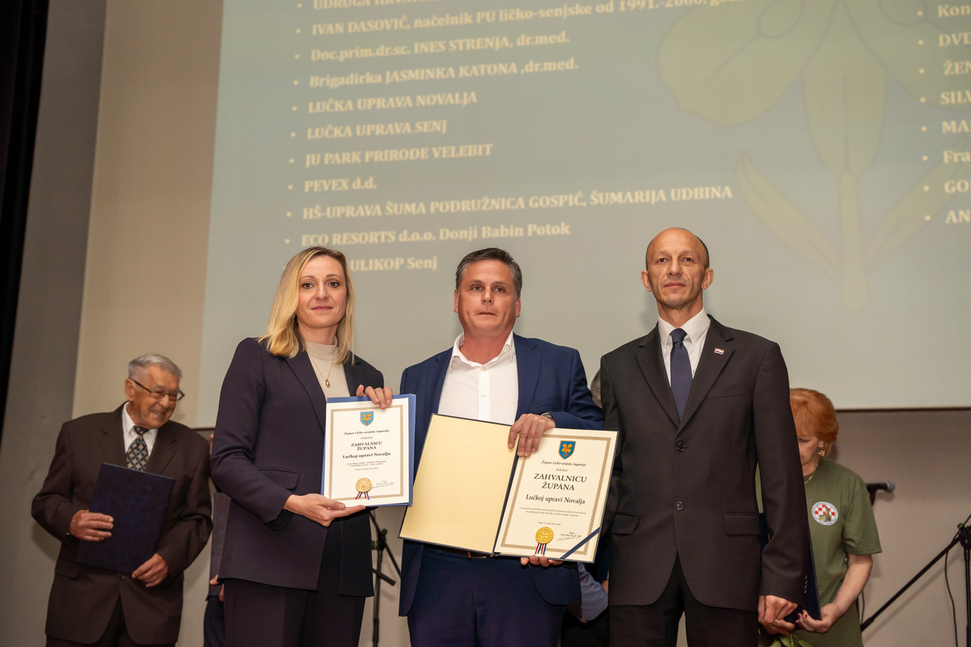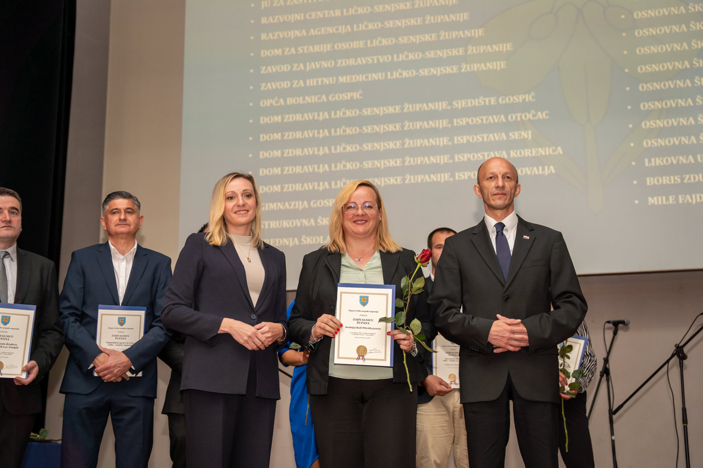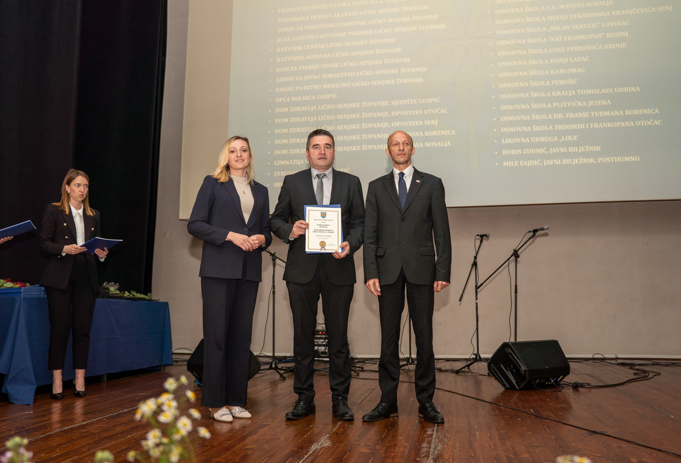 Priznanja Ličko-senjske županije dodjeljena su braniteljskoj udruzi “Naši korijeni Kuterevo”, Željku Holjevcu, Zdravku Prši i Jeleni Benčić, dok su Godišnje nagrade Ličko-senjske županije preuzeli predstavnici za JU “Pećinski park Grabovača”, Planinarsko društvo “Željezničar” Gospić te Darko Kranjčević.