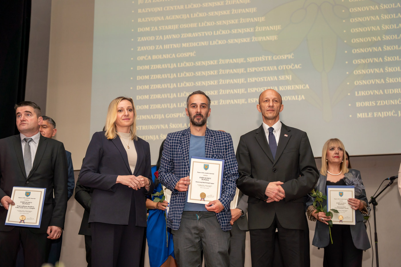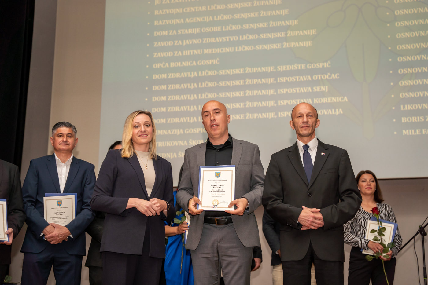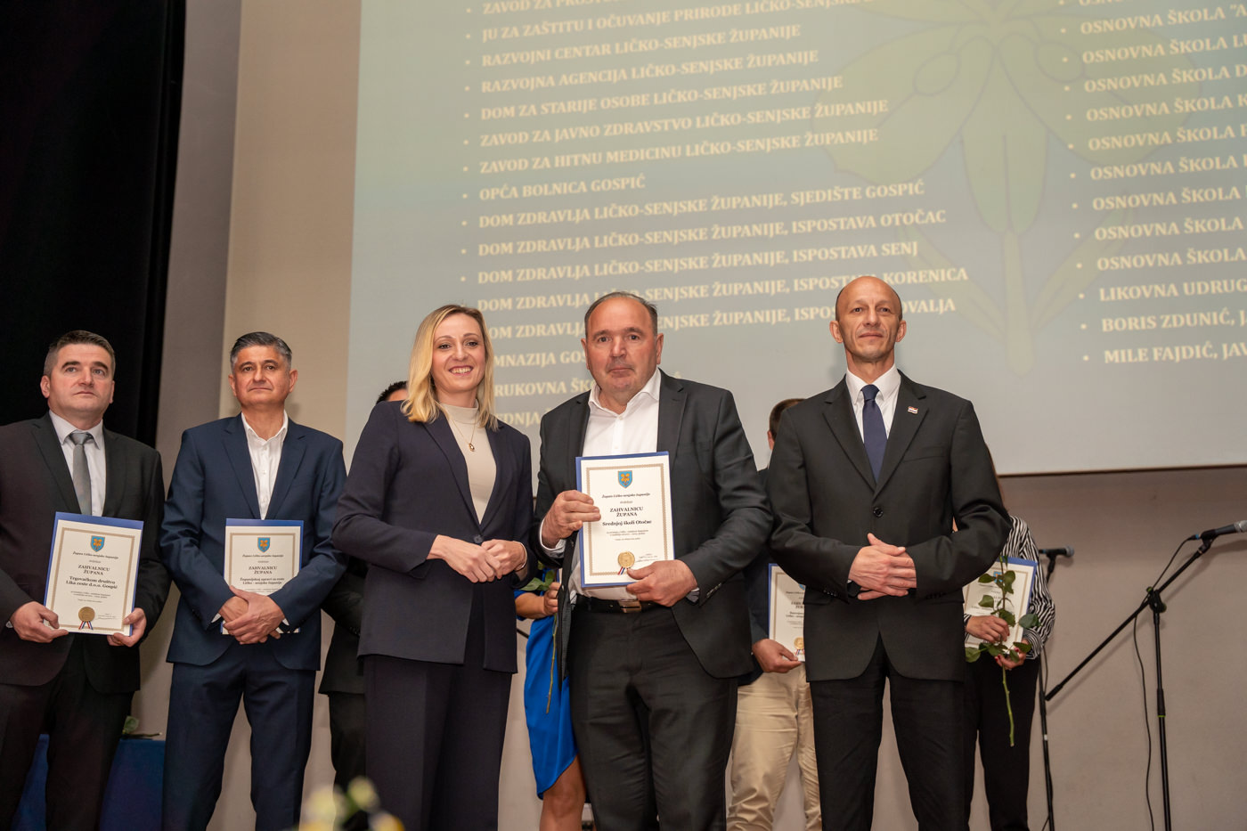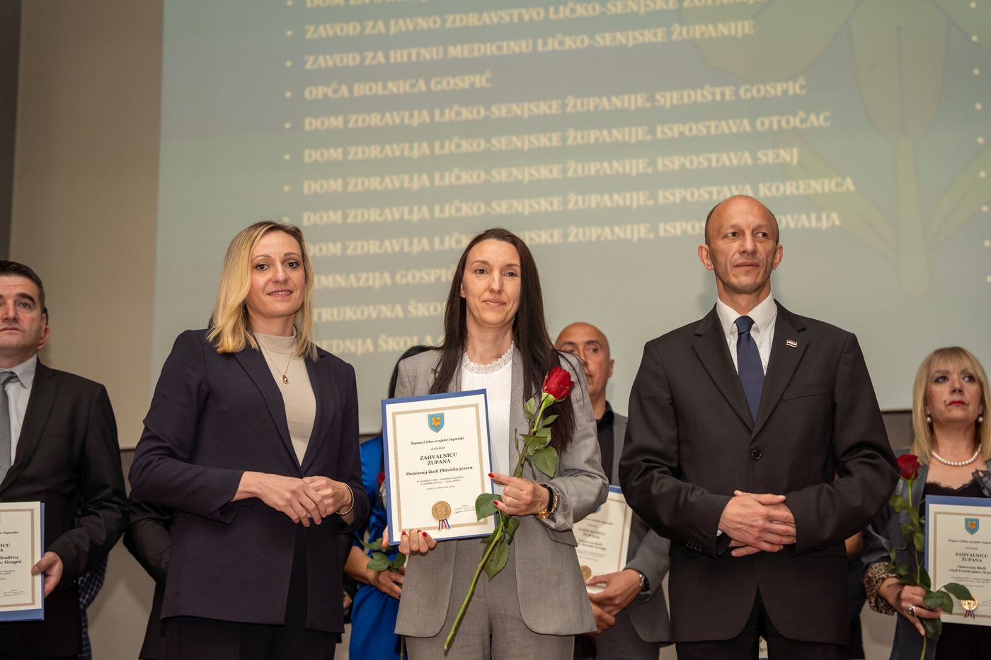 U istom tonu, zahvalnice su uručene i brojnim javnim ustanovama i školama: Trgovačko društvo Lika ceste d.o.o. Gospić, Županijska uprava za ceste Ličko-senjske županije, Zavod za prostorno uređenje Ličko-senjske županije, JU za zaštitu i očuvanje prirode Ličko-senjske županije, Razvojni centar i Razvojna agencija Ličko-senjske županije, Dom za starije osobe Ličko-senjske županije, JU Zavod za javno zdravstvo Ličko-senjske županije, Zavod za hitnu medicinu Ličko-senjske županije, Domovi zdravlja u Gospiću, Otočcu, Korenici, Senju i Novalji, Gimnazija Gospić, Strukovna škola Gospić, Srednja škola Otočac, Srednja škola Pavla Rittera Vitezovića u Senju, Srednja škola Plitvička jezera, te sve osnovne škole na području županije, uključujući i Likovnu udrugu Lika, javnog bilježnika Borisa Zdrunića te javnog bilježnika Milu Fajdića – posthumno.