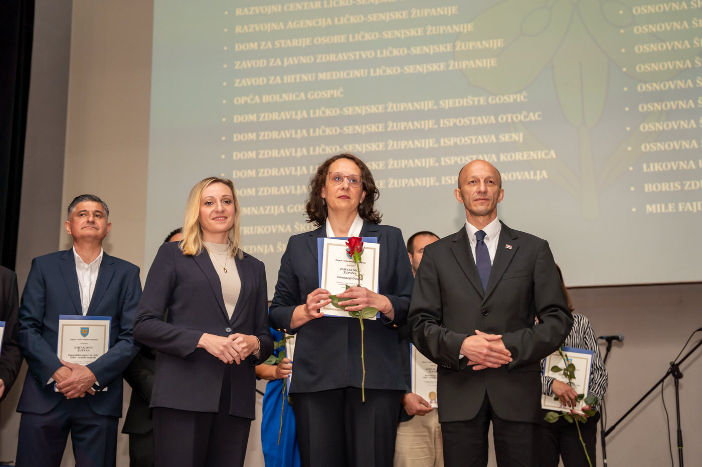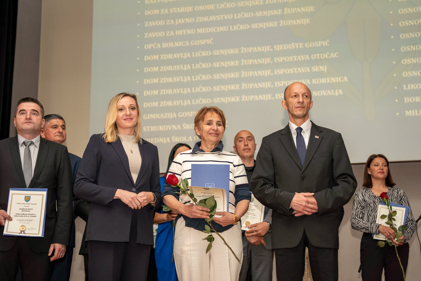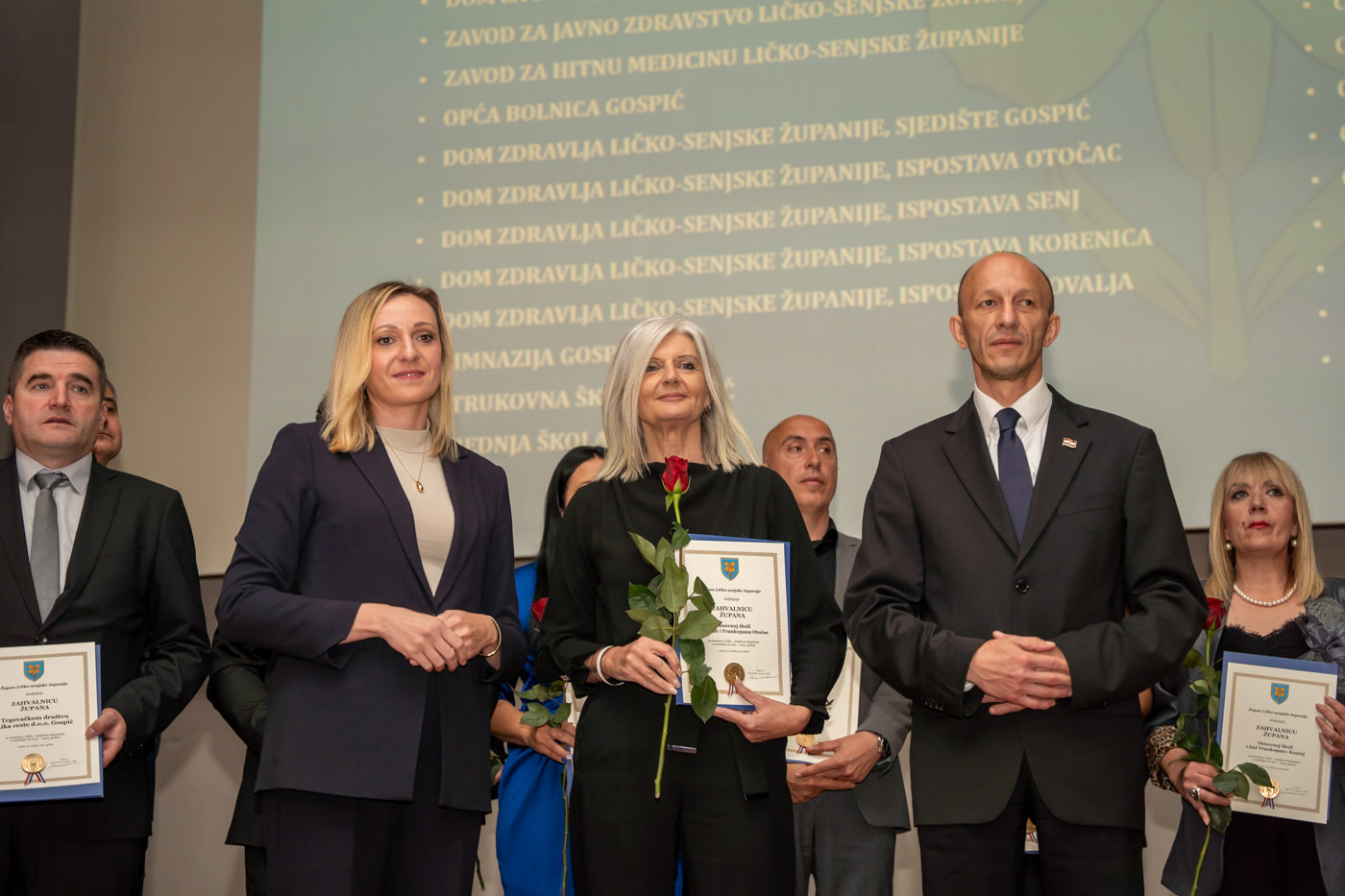 U istom tonu, zahvalnice su uručene i brojnim javnim ustanovama i školama: Trgovačko društvo Lika ceste d.o.o. Gospić, Županijska uprava za ceste Ličko-senjske županije, Zavod za prostorno uređenje Ličko-senjske županije, JU za zaštitu i očuvanje prirode Ličko-senjske županije, Razvojni centar i Razvojna agencija Ličko-senjske županije, Dom za starije osobe Ličko-senjske županije, JU Zavod za javno zdravstvo Ličko-senjske županije, Zavod za hitnu medicinu Ličko-senjske županije, Domovi zdravlja u Gospiću, Otočcu, Korenici, Senju i Novalji, Gimnazija Gospić, Strukovna škola Gospić, Srednja škola Otočac, Srednja škola Pavla Rittera Vitezovića u Senju, Srednja škola Plitvička jezera, te sve osnovne škole na području županije, uključujući i Likovnu udrugu Lika, javnog bilježnika Borisa Zdrunića te javnog bilježnika Milu Fajdića – posthumno.