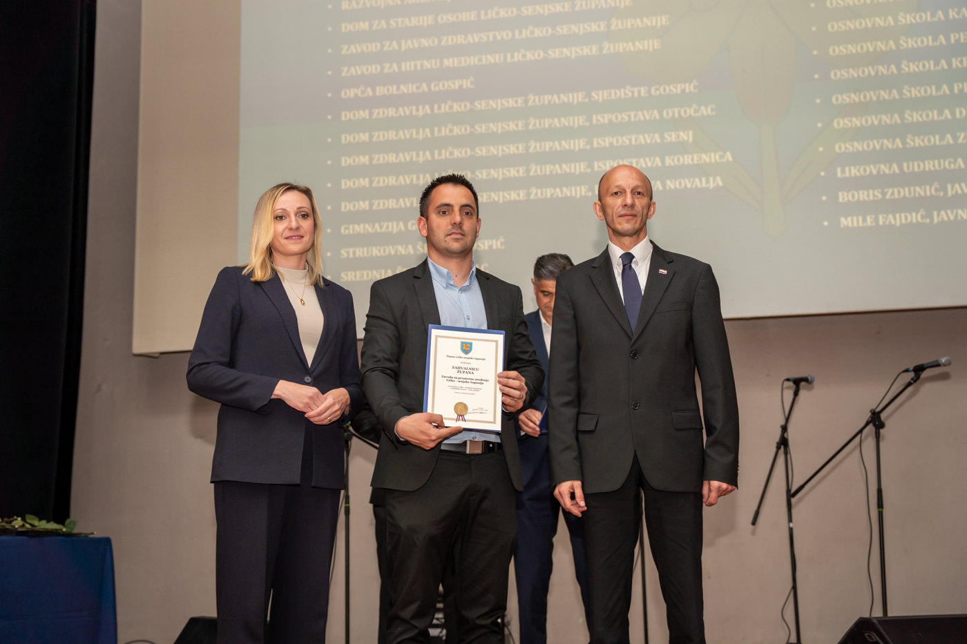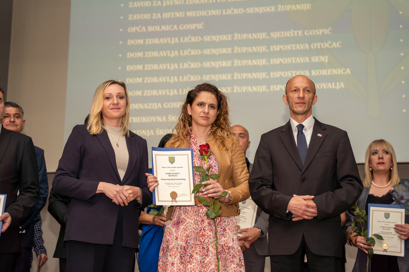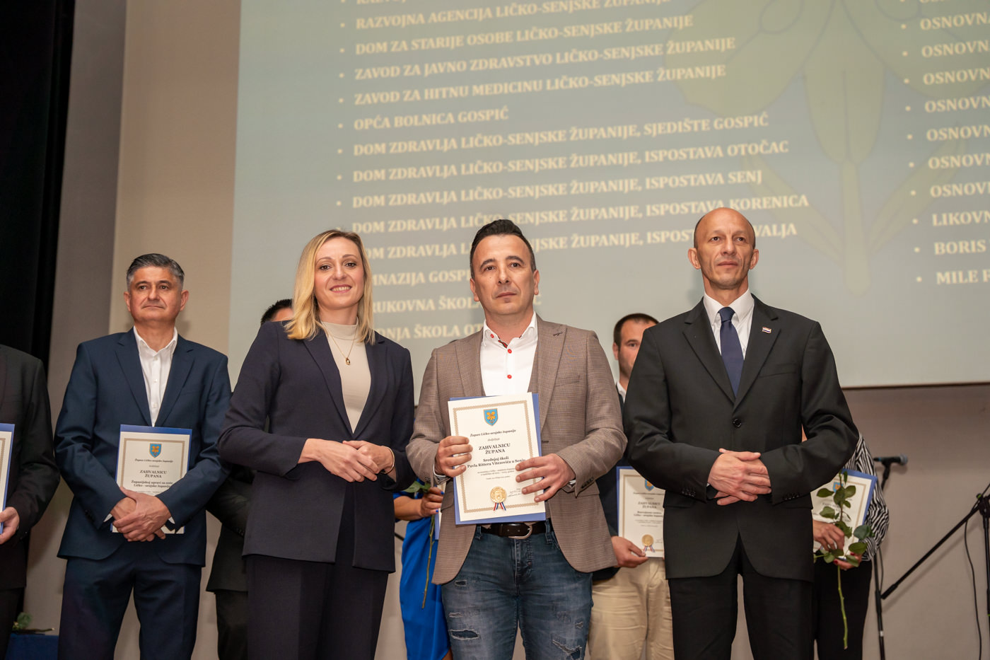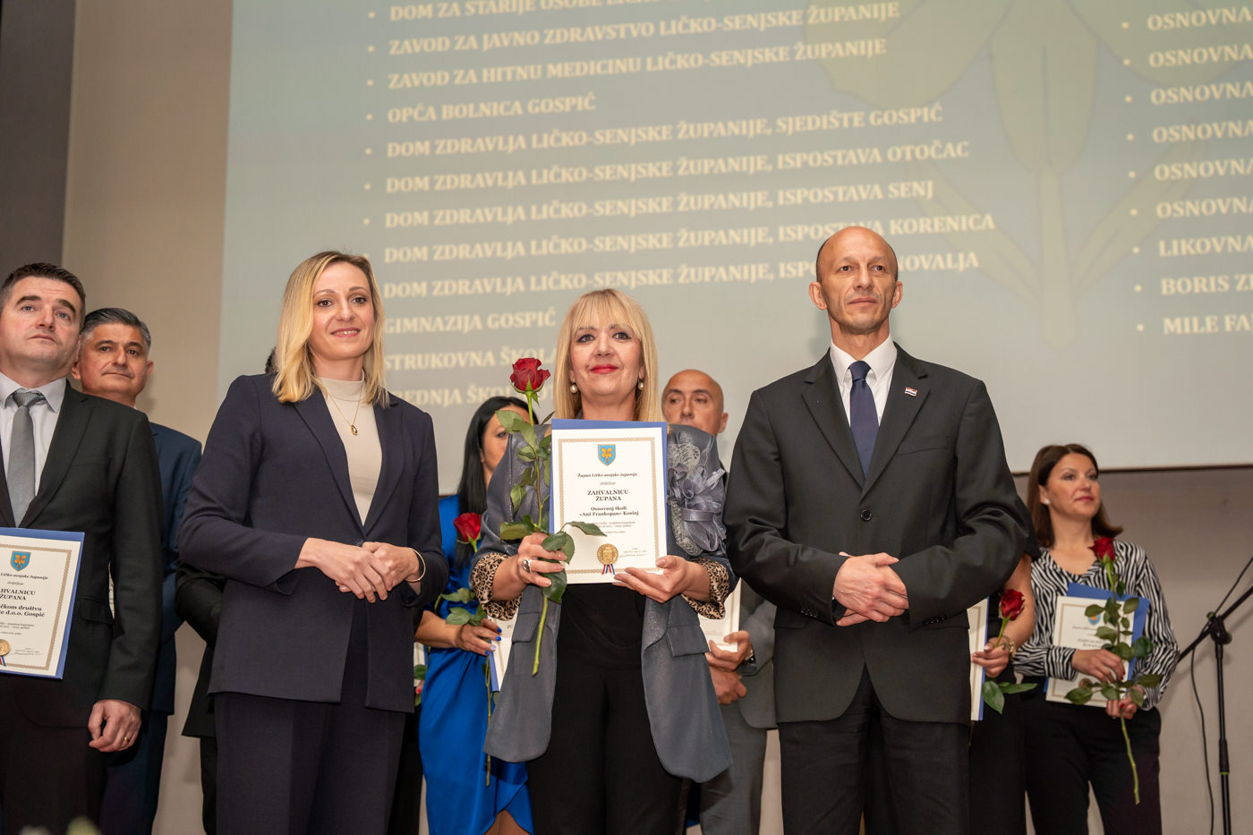 U istom tonu, zahvalnice su uručene i brojnim javnim ustanovama i školama: Trgovačko društvo Lika ceste d.o.o. Gospić, Županijska uprava za ceste Ličko-senjske županije, Zavod za prostorno uređenje Ličko-senjske županije, JU za zaštitu i očuvanje prirode Ličko-senjske županije, Razvojni centar i Razvojna agencija Ličko-senjske županije, Dom za starije osobe Ličko-senjske županije, JU Zavod za javno zdravstvo Ličko-senjske županije, Zavod za hitnu medicinu Ličko-senjske županije, Domovi zdravlja u Gospiću, Otočcu, Korenici, Senju i Novalji, Gimnazija Gospić, Strukovna škola Gospić, Srednja škola Otočac, Srednja škola Pavla Rittera Vitezovića u Senju, Srednja škola Plitvička jezera, te sve osnovne škole na području županije, uključujući i Likovnu udrugu Lika, javnog bilježnika Borisa Zdrunića te javnog bilježnika Milu Fajdića – posthumno.