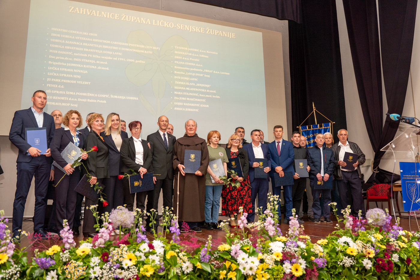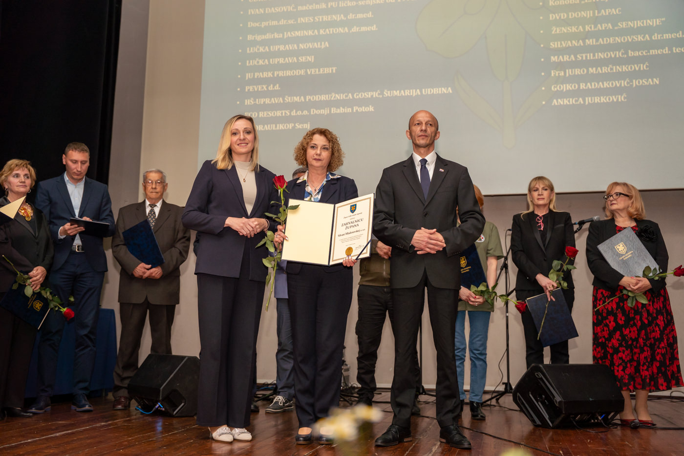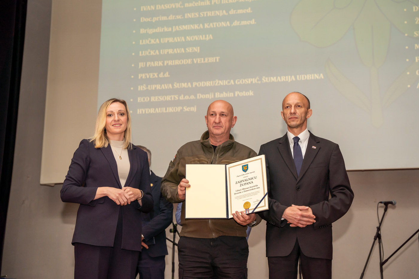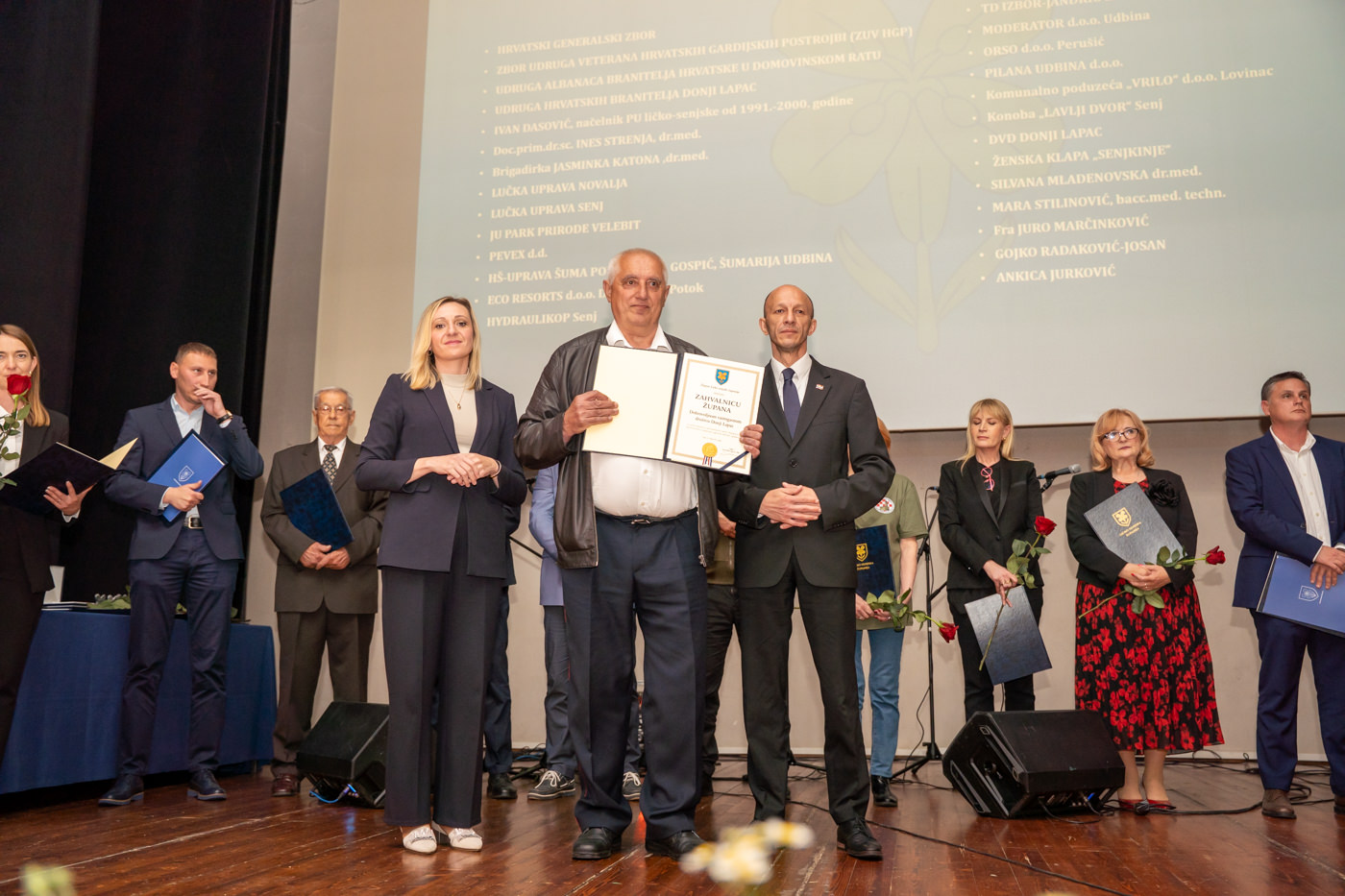 Svečanost je uveličana nastupom ženske klape “Senjkinje”, a u nastavku su dodijeljena javna priznanja Ličko-senjske županije, među kojima i Zahvalnice župana, koje su primili: Hrvatski generalski zbor, Zbor udruga veterana hrvatskih gardijskih postrojbi (ZUV HGP), Udruga Albanaca branitelja Hrvatske u Domovinskom ratu, Udruga hrvatskih branitelja Donji Lapac, Ivan Dasović (načelnik PU ličko-senjske 1991.–2000.), doc. prim. dr. sc. Ines Strenja, dr. med., Lučka uprava Novalja, Lučka uprava Senj, JU Park prirode Velebit, Pevex d.d., HŠ-Uprava šuma Podružnica Gospić, Šumarija Udbina, ECO Resorts d.o.o. Donji Babin Potok, Hidraulikop Senj, TD Izbor-Jandrić d.o.o. Korenica, Moderator d.o.o. Udbina, ORSO d.o.o. Perušić, Komunalno poduzeće “Vrilo” d.o.o. Lovinac, Konoba “Lavlji dvor” Senj, DVD Donji Lapac, Ženska klapa “Senjkinje”, Silvana Mladenovska dr. med., Mara Stilinović, bacc. med. techn., fra Juro Marčinković, Gojko Radaković-Jošan, Ankica Jurković.