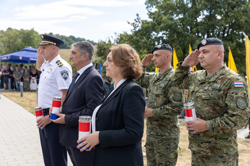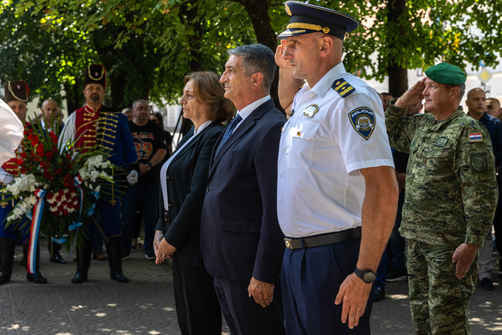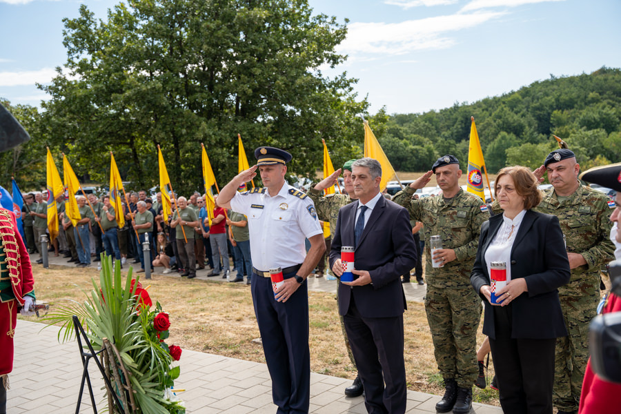” Okupili smo se ovdje kako bismo odali zahvalnost svim našim ratnim prijateljima, hrvatskim vojnicima i policajcima, te civilnim žrtvama koji su dali svoj život u vojno redarstvenoj operaciji “Oluja” i tijekom Domovinskog rata. Tu smo i radi svečanog obilježavanja jednog od najznačajnijih datuma u povijesti hrvatskoga naroda. Današnji blagdan ujedno je i zahvala za ukupnu pobjedu u Domovinskome ratu, a ona je rezultat zajedništva hrvatskog naroda”, istaknuo je brigadir Šare.