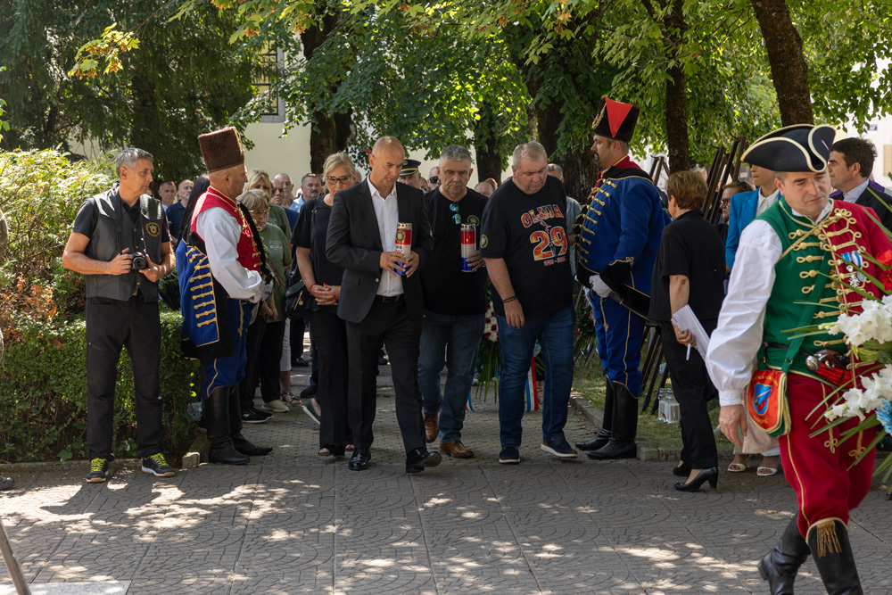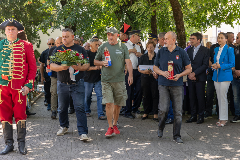 Vijence i svijeće položili su članovi obitelji poginulih branitelja u VRO Oluja, predstavnice Udruge udovica i Udruge djece poginulih branitelja Ličko-senjske županije, u ime predsjednika Hrvatskog sabora Gordana Jandrokovića izaslanik i saborski zastupnik Ivan Dabo, izaslanik predsjednika Vlade RH Andreja Plenkovića, župan Ličko-senjske županije Ernest Petry, izaslanik potpredsjednika Vlade RH i ministra hrvatskih branitelja Tome Medveda, državni tajnik Stjepan Sučić, predstavnici Ministarstva obrane RH i Ministarstva unutarnjih poslova RH, predstavnici Grada Gospića predvođeni gradonačelnikom Darkom Milinovićem, predstavnici Udruge 9. gardijske brigade “Vukovi” s ratnim zapovjednicima koje je predvodio prvi zapovjednik brigade general Mirko Norac, predstavnici Kluba branitelja Zbora narodne garde 118. brigade HV Gospić, predstavnici 111. brigade HV Rijeka, predstavnice Udruge udovica hrvatskih branitelja te Udruge roditelja poginulih branitelja Domovinskog rata Primorsko-goranske županije, predstavnici braniteljskih udruga Raba te Grada Raba, predstavnici Primorsko-goranske županije, predstavnici Ličko-senjske županije, predstavnici Grada Novalje, predstavnici Općine Lopar i Udruge branitelja s područja Općine Lopar, predstavnici Općine Karlobag, Općine Brinje, Općine Udbina, Općine Plitvička Jezera te udruge branitelja s područja općine, predstavnici Vatrogasne zajednice Ličko-senjske županije te svi ostali koji su došli odati počast žrtvama Domovinskog rata.