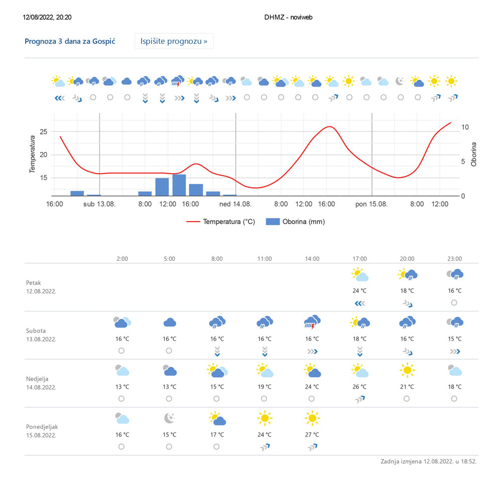 Izgledi vremena od 14.08.2022. do 16.08.2022.
