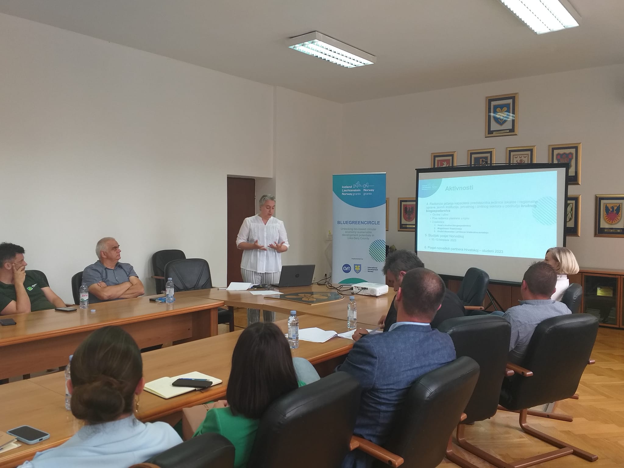 Prisutne je na početku pozdravila Mary Ann Rukavina Cipetić, predsjednica GTF-Inicijative za održivi rast i rekla nešto više o samom projektu i planiranim aktivnostima: “Ovim projektom postavljamo temelje za razvoj institucionalne infrastrukture kružnog gospodarstva u Ličko-senjskoj županiji. Povezivanjem dionika iz različitih sektora unutar Radne skupine omogućit ćemo razmjenu ideja i primjera dobre prakse s različitih strana uz povezivanje na lokalnoj razini a kasnije i bilateralnu suradnju s norveškim organizacijama i poduzetnicima.”