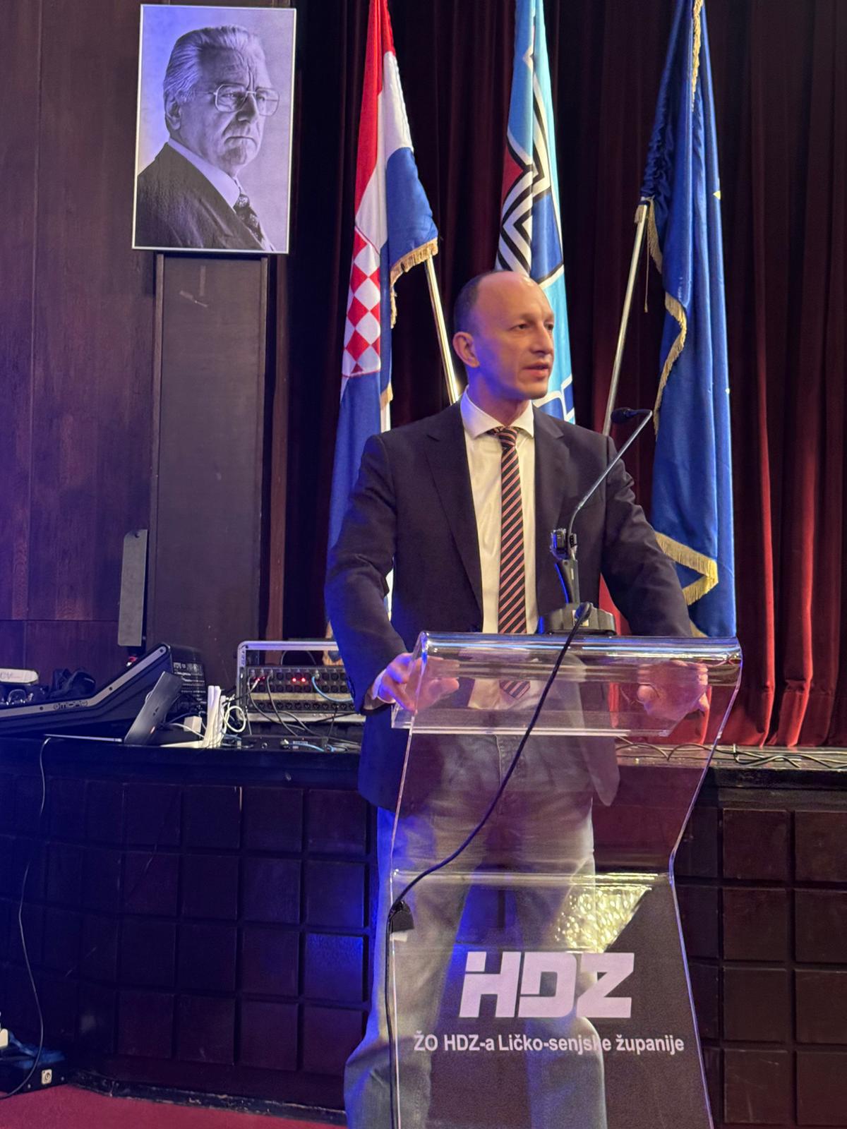 Govoreći o Domovinskom ratu, istaknuo je da su hrvatski branitelji dali nemjerljiv doprinos obrani i stvaranju države te poručio da je na današnjim i budućim generacijama odgovornost čuvati izvore i vrijednosti za koje su mnogi položili svoje živote. Naglasio je važnost prijenosa političke i moralne odgovornosti na mlađe generacije, uz poruku da će im stariji članovi i dalje biti potpora i oslonac. U nastavku govora osvrnuo se na rad Ličko-senjske županije, istaknuvši kako su u proteklom razdoblju realizirani brojni projekti u svim gradovima i općinama na području županije. Najavio je nastavak razvojnih aktivnosti u nadolazećem razdoblju, uz snažnu potporu Vlade Republike Hrvatske, resornih ministarstava i predsjednika Vlade, naglasivši da je cilj ravnomjeran razvoj cijelog područja Ličko-senjske županije i poboljšanje kvalitete života svih njezinih stanovnika.
