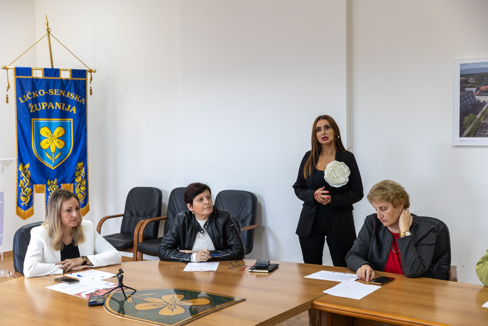Zamjenica župana Ličko-senjske županije Jasna Orešković-Brkljačić obratila se svim prisutnima, te naglasila kako je ovo vrlo važan strateški dokument za ovo područje i zahvalila se svima koji će sudjelovati u izradi ovog socijalnog plana, a detalje samog financiranja i projekta objasnila je voditeljica projekta Josipa Ojurović-Čačić: