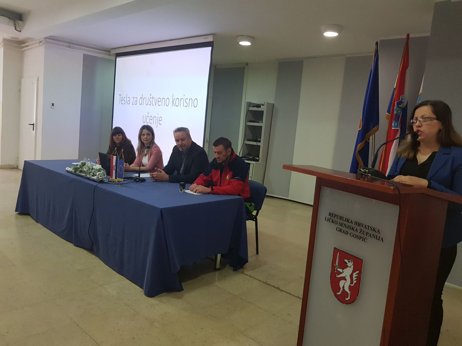Dekanica Veleučilišta Nikola Tesla u Gospiću, dr.sc. Vlatka Ružić mag.oec. pozdravila je prisutne i izrazila zadovoljstvo da Veleučilište kroz sudjelovanje u projektnim aktivnostima omogućuje svojim studentima dodatne kanale za razvoj svojih praktičnih znanja i vještina. Također, naglasila je kako uspostavljeno partnerstvo s predstavnicima civilnog društva može samo pozitivno utjecati na oblikovanje zajednice i održivi razvoj područja.