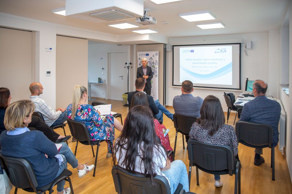 Radionica pod nazivom „Tržišni trendovi i lanci vrijednosti u suvremenom turizmu“ bila je namijenjena svima koji su dio lanca turističke ponude ili to žele postati. Kroz radionicu se nastojalo upoznati sudionike s tržišnim trendovima koji obilježavaju suvremenu turističku potražnju kao i sa konceptom, funkcioniranjem, odnosima i koordinacijom unutar lanca vrijednosti u turizmu.