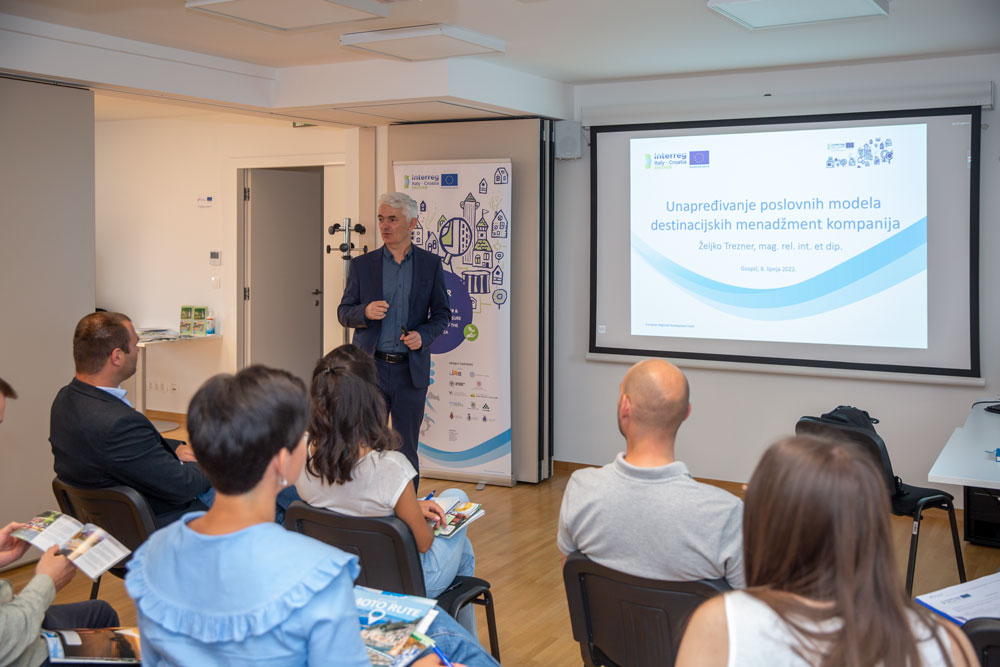 Radionica pod nazivom „Razvoj proizvoda i poslovni model destinacijskih menadžment kompanija“ bila je namijenjena menadžerima i vlasnicima destinacijskih menadžment kompanija. Na taj način nastojalo se ukazati na važnost i specifičnosti razvoja složenih turističkih proizvoda te njihovu ulogu u turističkom opskrbnom lancu i lancu vrijednosti u turizmu. Cilj radionice bio je predstaviti proces kreiranja i razvoja inovativnih složenih turističkih proizvoda destinacijskih menadžment kompanija.