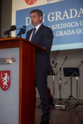 Svečana sjednica Gradskog vijeća Grada Gospića održana je u petak u kinu „Korzo“. Sjednici su uz domaćine, predsjednika GV Petra Radoševića i gradonačelnika Karla Starčevića pristustovali brojni uzvanici; izaslanik predsjednika Hrvatskog sabora Marijan Kustić,  ministar hrvatskih branitelja Tomo Medved, župan ličko-senjski dr. Darko Milinović, počasni građanin grada Gospića general Mladen Markač i mnogi drugi.