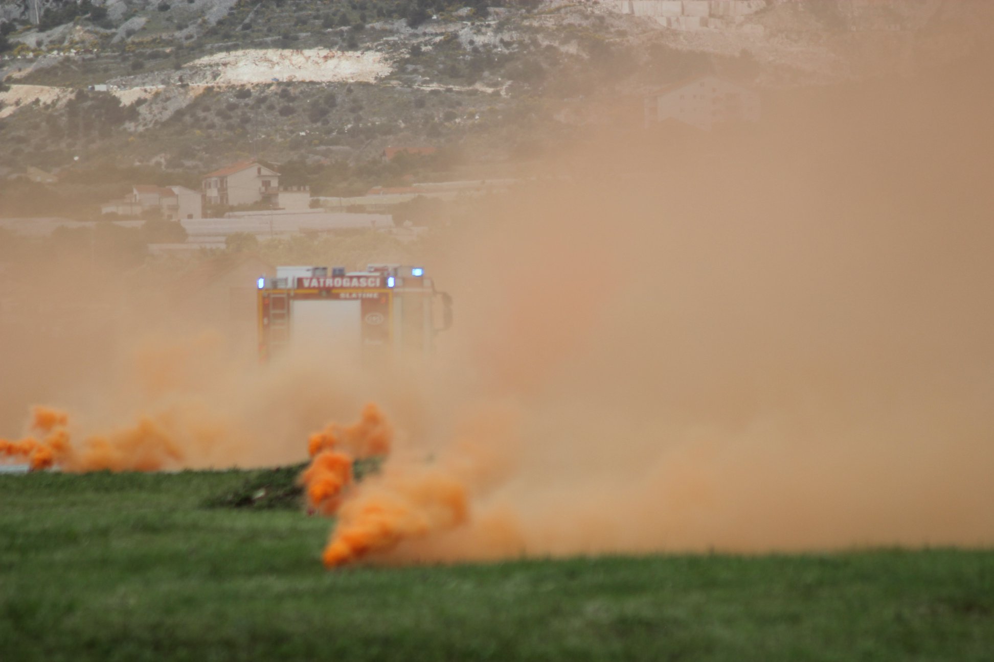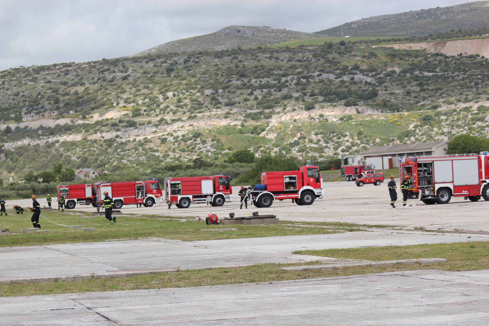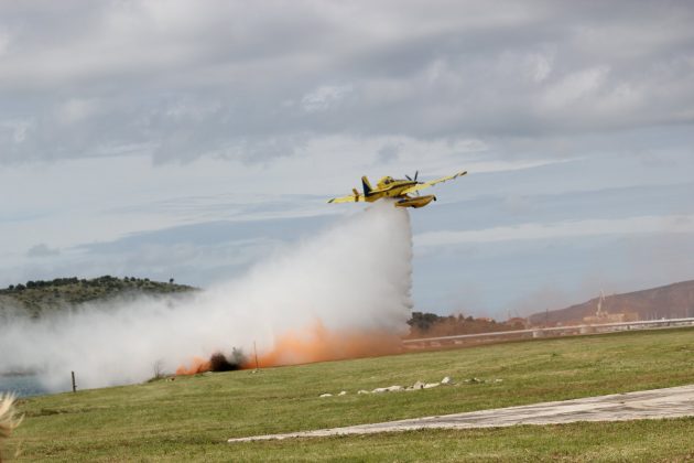 Nakon kratkog posjeta Situacijsko-operativnom središtu, u kojem su ukratko upoznati s radom službenika, dužnosnici su se uputili na prostor vojarne „Knez Trpimir“, gdje je uslijedila vatrogasna vježba u kojoj je prikazano postupanje prilikom požara otvorenog prostora. Uz vatrogasna vozila i vatrogasce, na vježbi su sudjelovali protupožarni zrakoplovi Canadair i Air Tractor te helikopteri. Prikazana je mogućnost korištenja vojnog desantnog broda za prijevoz vatrogasaca na požarište te desantiranje vatrogasaca iz helikoptera. Simulaciju izvlačenja ozlijeđenog vatrogasaca pomoću helikoptera izveli su pripadnici HS tima, sastavljeni od članova Državne intervencijske postrojbe i HGSS-a. Vježba je završila kada su vatrogasci koji su visjeli na konopu iz helikoptera razvili hrvatsku zastavu.