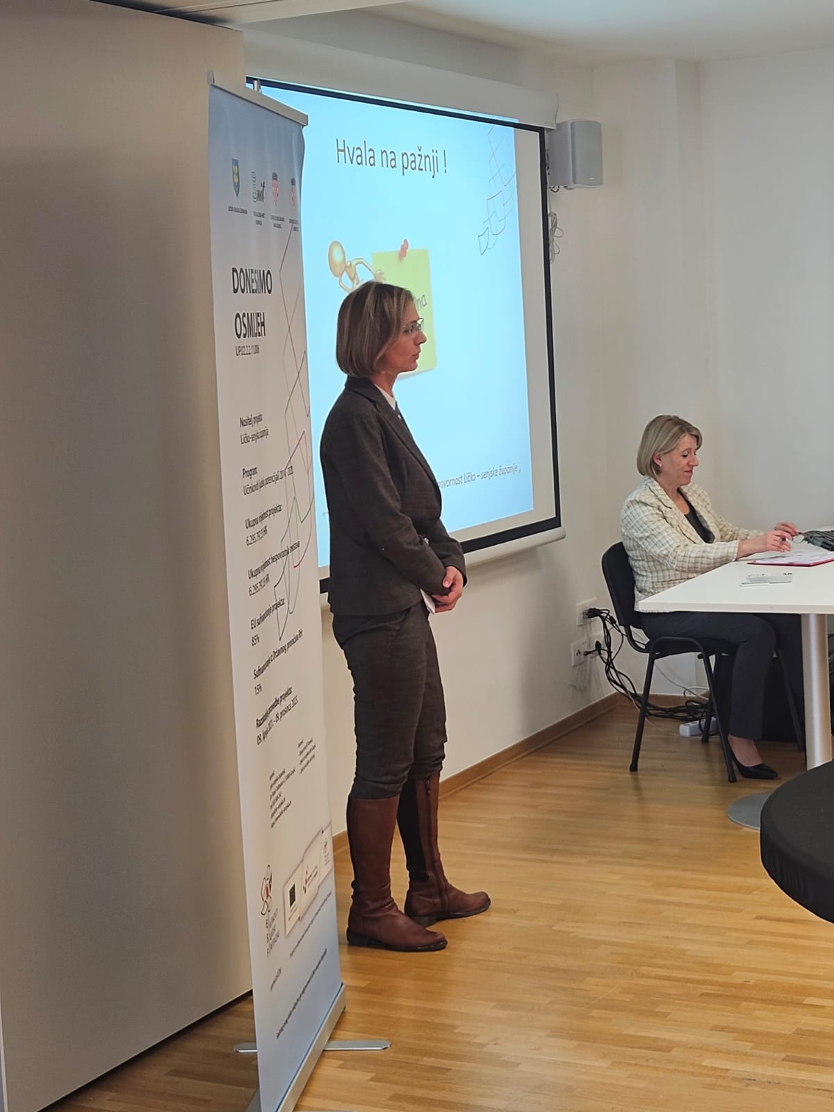 O iskustvima u provedbi projekta govorile su Nikolina Devčić, v. d. predstojnica Hrvatskog zavoda za socijalni rad, Područni ured Gospić te Marijana Nahod, predstavnica Udruge žena Nit Korenica.