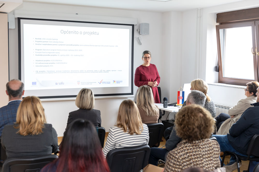 “Poboljšanje pristupa primarnoj zdravstvenoj zaštiti s naglaskom na udaljena i deprivirana područja kroz ulaganja u potrebe pružatelja usluga zdravstvene zaštite na primarnoj razini u Ličko-senjskoj županiji“ KK.08.1.1.02.0017 naziv je projekta čija je završna konferencija održana danas u dvorani Razvojnog centra Ličko-senjske županije. Projekt je financiran iz EU i investicijskih fondova u okviru Operativnog programa Konkurentnost i kohezija 2014.-2020., iz Europskog fonda za regionalni razvoj. Ukupna vrijednost projekta iznosi 4.252.058,95 kn, a Ličko-senjskoj županiji dodijeljena su bespovratna sredstva od strane Europske unije u iznosu od 3.605.839,40 kn (intenzitet potpore 85%). Partner na projektu je bio Dom Zdravlja Otočac.