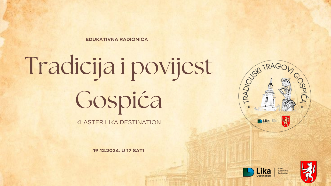 Klaster Lika Destination poziva sve građane da se pridruže online radionici 19. prosinca u 17 sati (na linku: https://meet.google.com/noz-ugwe-wsb) i saznaju više o bogatoj povijesti i tradiciji Gospića. Radionica je otvorena za sve zainteresirane, a više informacija o sudjelovanju bit će dostupno putem službenih kanala Klastera Lika Destination.