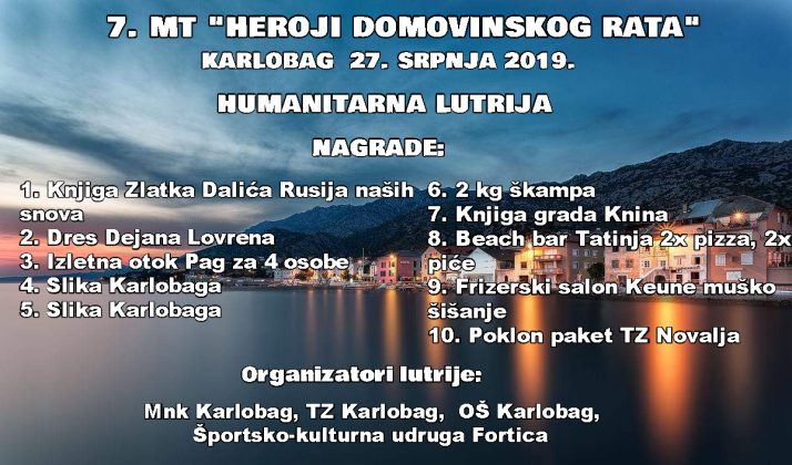 7. MT „Heroji Domovinskog rata“ koji se u Karlobagu održava tradicionalno povodom 24-obljetnice VRO “Oluja” održati će se ovu subotu na igralištu Laktinac sa početkom u 16 sati.
