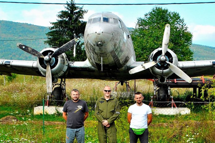 Dečki su nam veselo pozirali ispred aviona Douglas DC-3 na Otočkom aerodrumu , te pozvali sve zainteresirane da ispune svoj dječački san i vinu se u zrak..