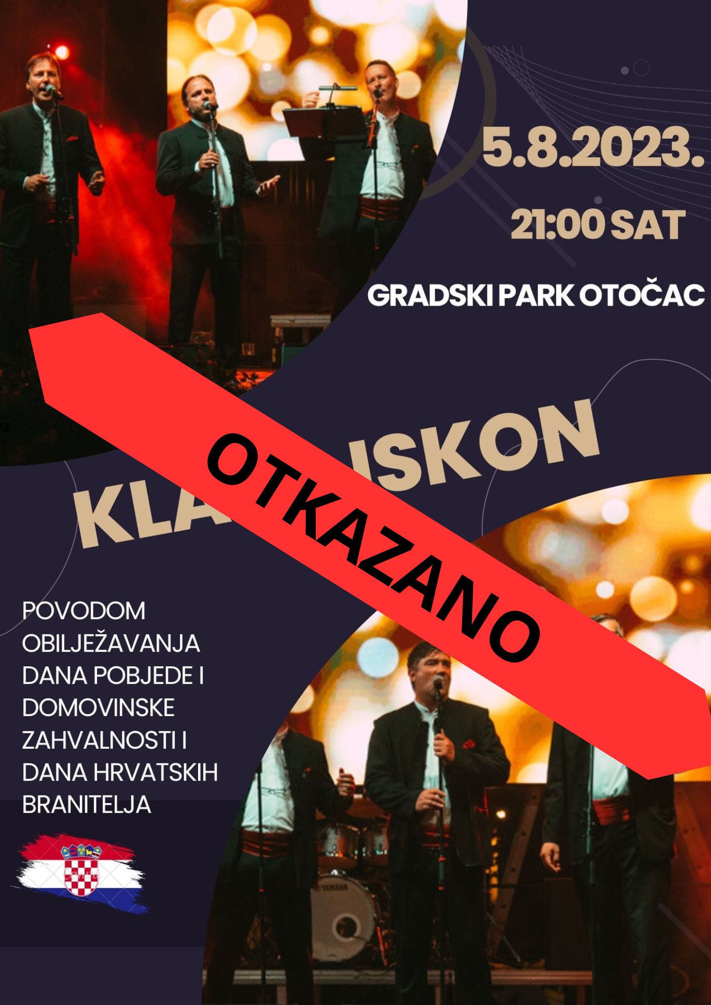 obavještavamo Vas da  se zbog lošeg vremena otkazuje večerašnji koncert Klape Iskon