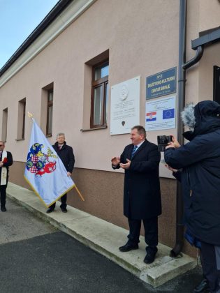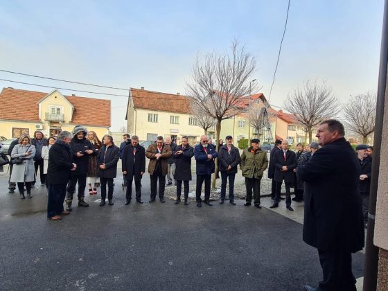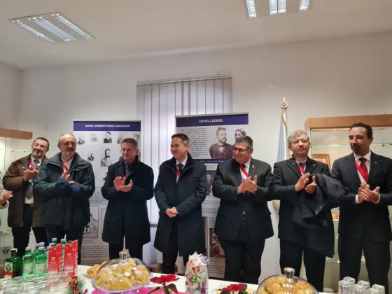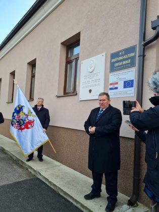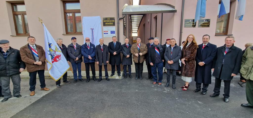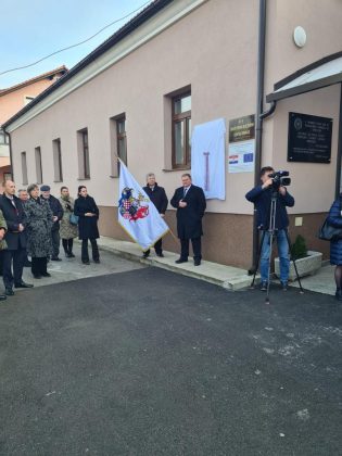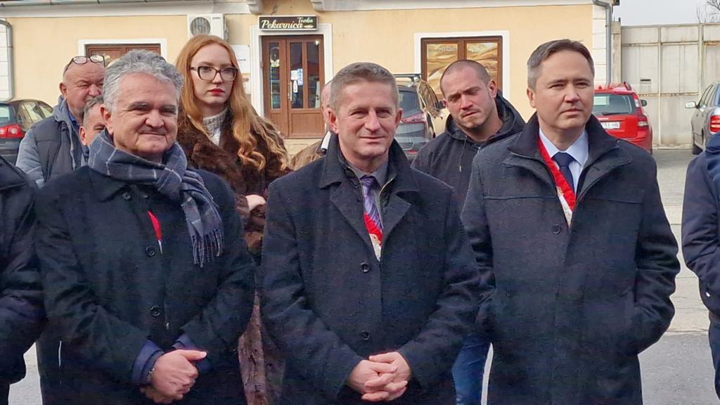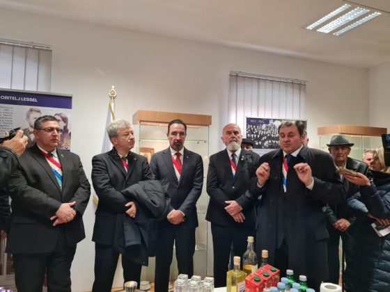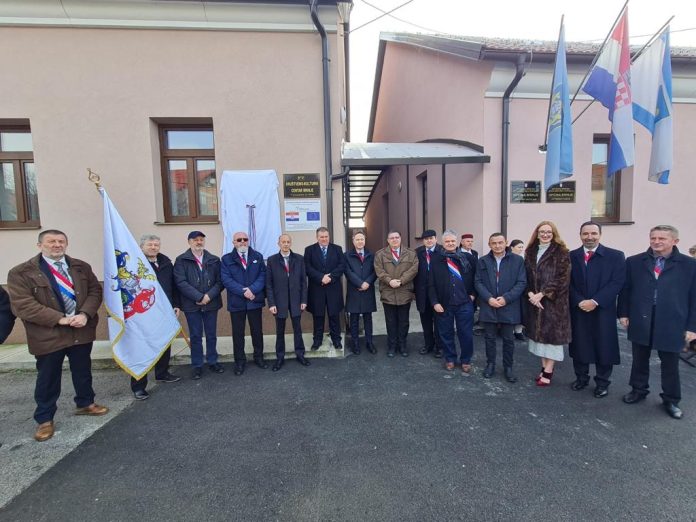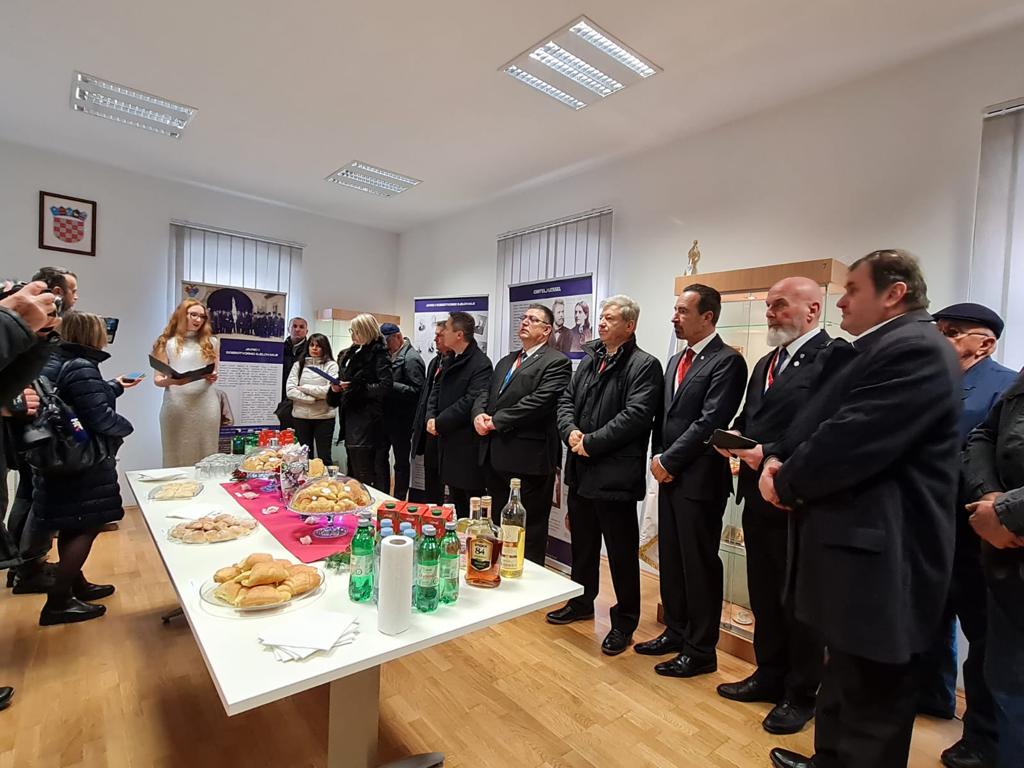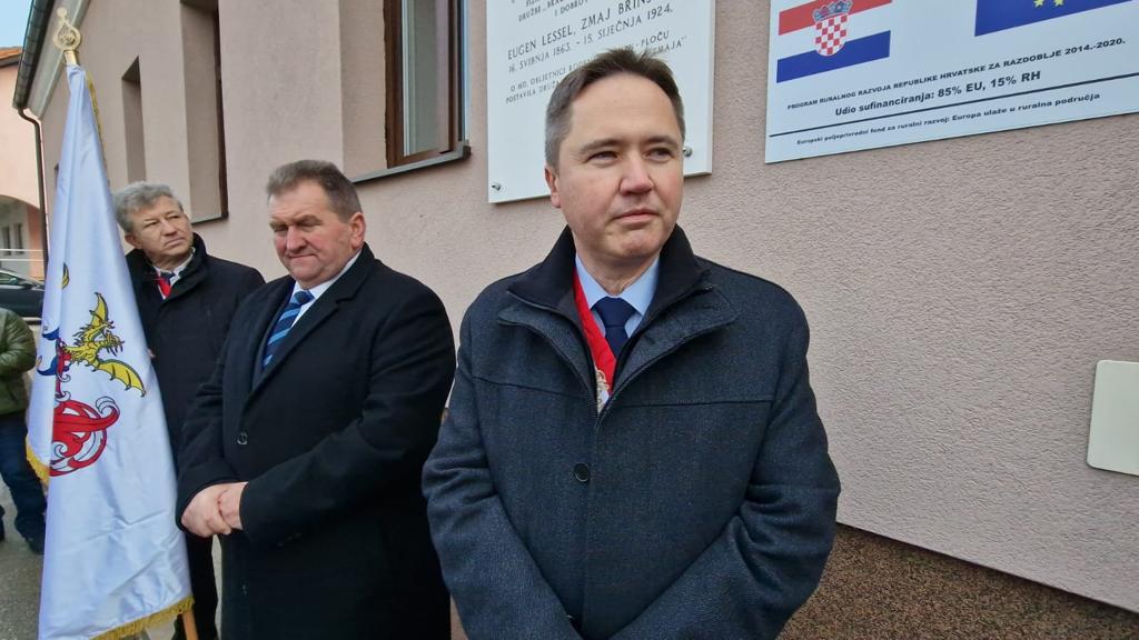 Spomen ploču Eugenu Lesselu zajedno su otkrili načelnik Fumić i veliki meštar Mislav Grgić.