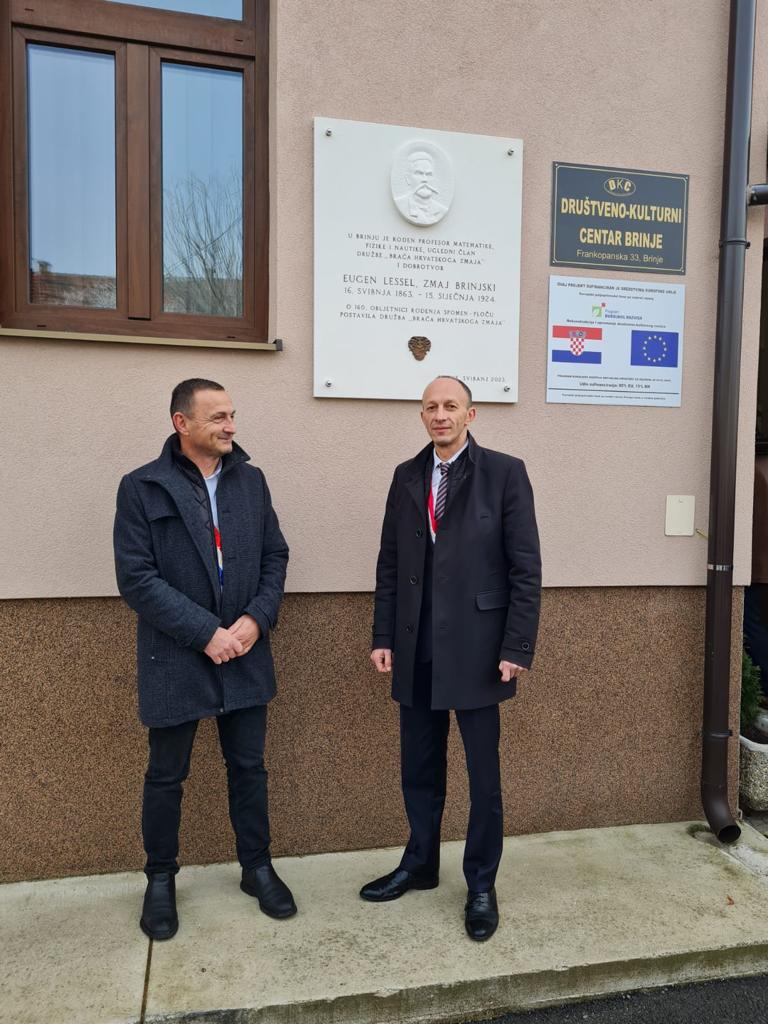 Načelnik Fumić izrazio je zadovoljstvo što je Družba prepoznala Brinje kao mjesto u kojem će se odati počast Eugenu Lesselu te naveo da će postavljenjem spomen ploče tajno biti obilježen njegov život i rad.