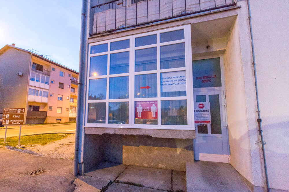 Posebno izdvojena ambulanta za pregled bolesnika pod sumnjom na zaraženost koronavirusom započela je s radom 20.03.2020. godine na lokaciji Kralja Petra Krešimira 17, Gospić (Brioni). Organizirano je 24-satno dežurstvo.