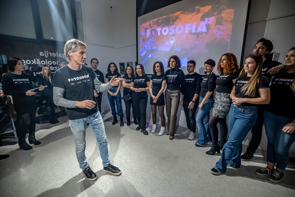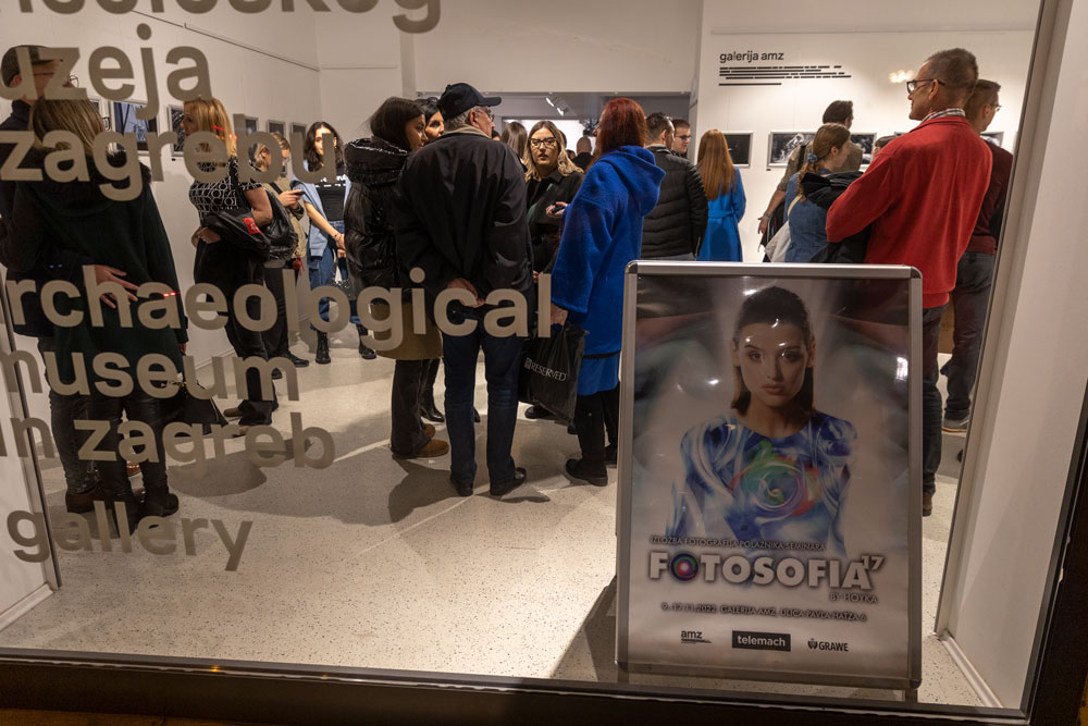 U prepunoj Galeriji Arheološkog muzeja u Zagrebu jučer je otvorena izložba radova polaznika sedamnaeste Fotosofije, besplatnog seminara za naprednu fotografiju pod vodstvom umjetničkog direktora, fotografa Damira Hoyke. Svaki od petnaest seminarista predstavio se s mini serijom od tri rada snimljena na temu ‘Art’.