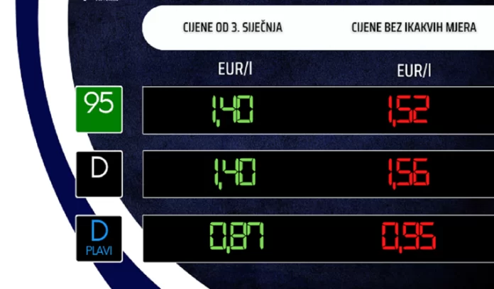Plavi dizel poskupljuje za dva centa na 0.87 eura po litri, a plin za spremnike za cent, na 1.18 eura po kilogramu. Plin za boce također poskupljuje za cent, na 1.74 eura po kilogramu.