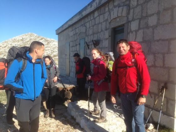 Milan Klobučar, predsjednik PD Željezničar ispričao nam je doživljaj trodnevne avanture – U petak rano ujutro, dobro raspoloženi, u dobroj atmosferi i sa osmijesima na licima krenuli smo put Makarske gdje nas dočekuje predsjednik HPD Makarska. Preuzimamo ključeve Planinarske kuće na Lokvi gdje je predviđen naš smještaj, obavljamo posljednju kupovinu za tri dana, a cilj nam je obići pet kontrolnih točaka Hrvatske planinarske obilaznice. Putovanje nastavljamo cestom Makarska – Vrgorac, nakon desetak kilometara vožnje s lijeve strane se odvajamo na ulaz u Park prirode Biokovo. Na ulazu u PP Biokovo nailazimo na rampu i info kućicu, dočekuju nas vrlo simpatični djelatnici parka koji su nas počastili sa nekoliko zanimljivih, ali i korisnih informacija koje su itekako bitne za naš daljnji plan. Vožnju nastavljamo serpentinskim usponom kroz gustu borovu šumu sve do samoga ruba Biokova, nakon čega dolazimo na Vlašku ravan gdje se zaustavljamo, ostavljamo vozila i pripremao se osvojiti Kimet (1536m), vrh koji dominira područjem tzv. mrežastoga krša, ujedno i prvi od pet vrhova naše trodnevne avanture. Budući da Kimet dominira područjem tzv. mrežastoga krša, put nas vodi planinarskom stazom gdje prolazimo kroz naoko travnate površine koje su u stvari prepune kamenja, kroz duboke i strme vrtače, krševite grebene i nakon cca 2.30h hoda dolazimo na cilj – Kimet (1536m). Pogled s vrha daje zanimljivu perspektivu Biokova, oduševljeni smo pogledima koji sežu od Kamešnice do Veleža, te s druge strane prema Pelješcu, Korčuli, Mljetu, Lastovu, ali i ostalim vrhovima Biokova. Kao i obično, takve predivne poglede neumorno koristimo za fotografiranje. Zadovoljni i veseli vraćamo se prema vozilima i nastavljamo do Planinarske kuće pod Sv. Jurom. Sada slijedi najteži dio, spremamo ruksake, opremu, hranu i sve što nam je potrebno, a kada Ličani dolaze tri dana na Biokovo svatko nosi dva ruksaka i još štošta. Dobro pripremljeni i još bolje teretni polazimo prema Planinarskoj kući Slobodan Ravlić na Lokvi(1467m), kuća je još poznata kao lugarnica na Lokvi. Dok se približavamo kuća nas očarava svojim izgledom u tom kamenitom bespuću, a udaljena je od ceste sat i trideset minuta hoda. I dalje teretni, sada već pomalo i umorni ali i zadovoljni dolazimo do kuće, raspremamo stvari , ložimo vatru, pripremamo večeru… Budući da naše gojzerice sutra očekuje zahtjevan i dugačak put, svi odlazimo na zasluženi odmor.