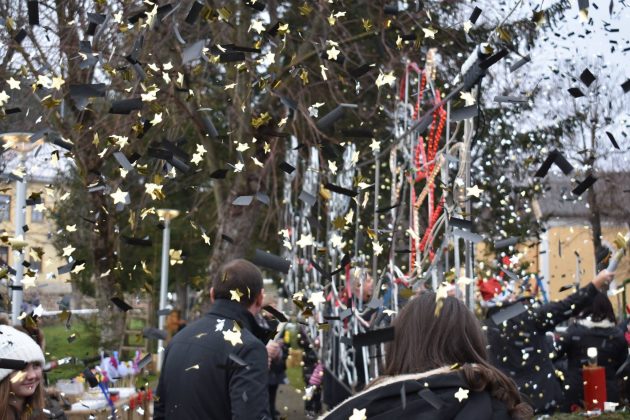 Uz grozničave poglede na satove (i mobitele) čekalo se podne. Glazbeni hit „Tek je dvanaest sati“, konfete, stotine upaljenih prskalica i zdravice označile su otkucavanje podnevne Nove godine. Načelnik Općine Perušić Ivica Turić obratio se okupljenom mnoštvu.