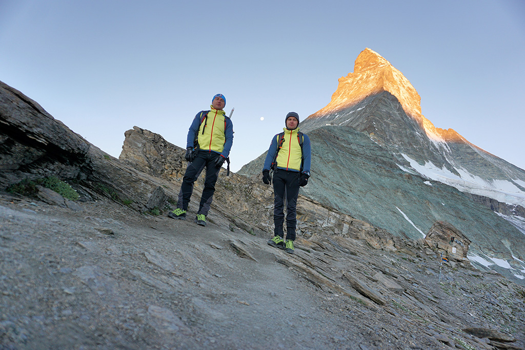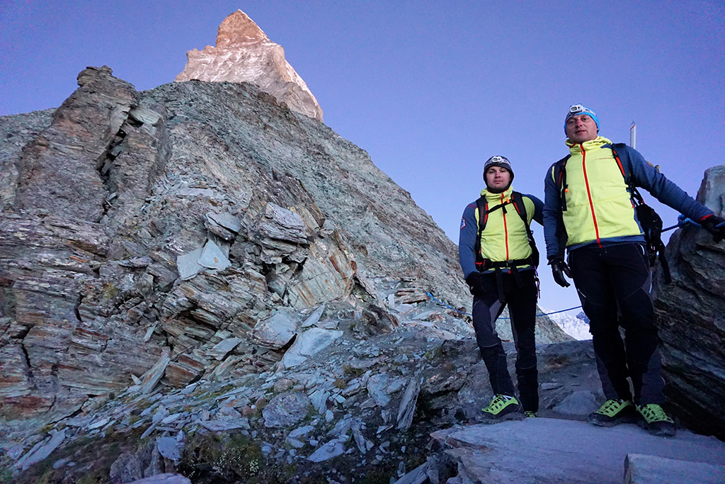 Švicarci su osmislili najsigurniji i najprihvatljiviji način da uspon kreće od Hornlihutte doma (3.260mnv) zbog toga što je najbliža točka početku uspona gdje se može noćiti i odmoriti uz visoku cijenu. Mi smo kretali na daleko teži način od doma Schwarzsee koji se nalazi između mjesta Zermatt i doma Hornlihutte, a noćili smo vani na otvorenom (bivakiranje) na 3.000 mnv. Zanimljiva je činjenica da oni koji noće u domu Hornlihuttre kreću na uspon oko 5 sati ujutro, a mi smo morali nadoknaditi to vrijeme krenuvši u 2 sata ujutro, nenaspavani i uz hladno vrijeme gdje je bilo i mraza na vrećama za spavanje. Prognoza je bila savršena i mi smo se osjećali super, ali veliki test za našu psihičku spremnost bilo je mnoštvo odrona kamenja koje nas je tijekom noći budilo. Naša želja za ovim usponom je bila velika i bili smo spremni. Strahopoštovanje imamo prema svim našim usponima, a osobito prema ovom.