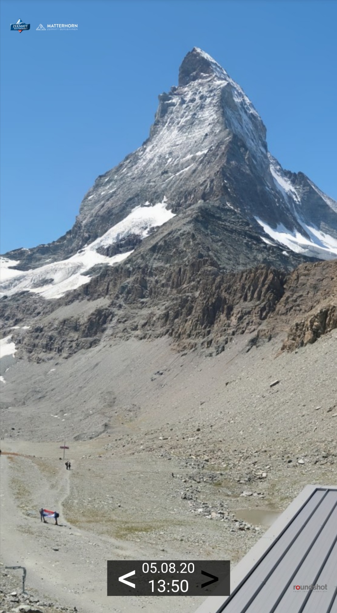 Uspon je krenuo glatko penjući se po granitnim stijenama koje su karakteristične po tome da izgledaju kao da su ploče posložene jedne po drugima. Penjanje po Hornli smjeru ide po istaknutom grebenu Matterhorna. Vertikalni detalji u kombinaciji sa visinom su nas tjerali do krajnjih granica izdržljivosti te bi svaki krivi pokret doveo do kobnog pada, ali smo ih uspješno savladavali u navezu osiguravajući jedan drugoga. Sve je ukazivalo na to kako ćemo uspješno popeti do vrha. Odjednom, začuli smo gromoglasnu tutnjavu i shvatili smo da se radi o odronu stijene, što i nije rijedak slučaj da se događa učestalo. Igrom slučaja smo se nalazili uz prevjesnu stijenu koja nas je zaštitila od padajućih dijelova stijene. U trenutku odrona stijene, iznad nas su bila dvojica alpinista koju je odron pokupio u ponor. Sve se to dogodilo pred našim očima. Doživjeli smo šok i trnci su nam prošli kroz cijelo tijelo gdje nismo jedno kratko vrijeme ni riječi prozborili. Nakon određenog perioda spasilački helikopter Air Zermatt je nadllijetao mjesto nesreće. Premda su takve tragedije česte na Matterhornu, sa dosadašnjih oko 900 ljudi poginulih, u našoj svijesti svaka se čini velikom tragedijom. Zbog cjelokupne situacije na kraju smo shvatili kako je puno prošlo vremena i zbog neizvjesnosti kako bi utjecao daljnji nastavak uspona, odlučili smo krenuti sa silaskom sa planine, koji je trajao oko 6 sati. Sigurno smo se spustili do doma Schwarszee 2.552 mnv . Nažalost, nismo došli do vrha, jer iskusstvo i znanje su nas naučili da ciljevi i uspjeh ne trebaju biti na prvom mjestu, već treba znati kada odustati, tj vratiti se kući živi i zdravi. Nadamo se ponovnom usponu na Matterhorn u dogledno vrijeme. Nakon svega bilo je potrebno još i voziti 10 sati do Hrvatske pa smo se vratili četvrti dan u petak 7.8.2020. u 4 sata ujutro.