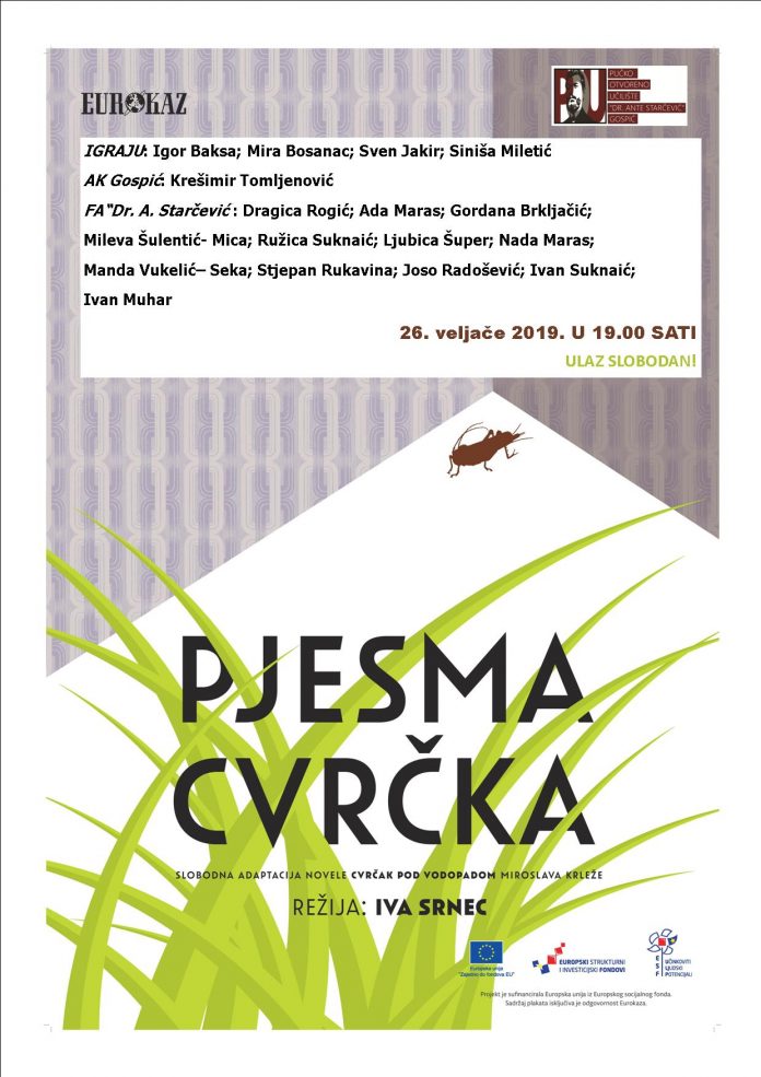 Predstava Pjesma cvrčka dio je projekta Scenska kreativnost u starijoj dobi, koji je sufinancirala Europska unija iz Europskog socijalnog fonda u sklopu operativnog programa Učinkoviti ljudski potencijali.