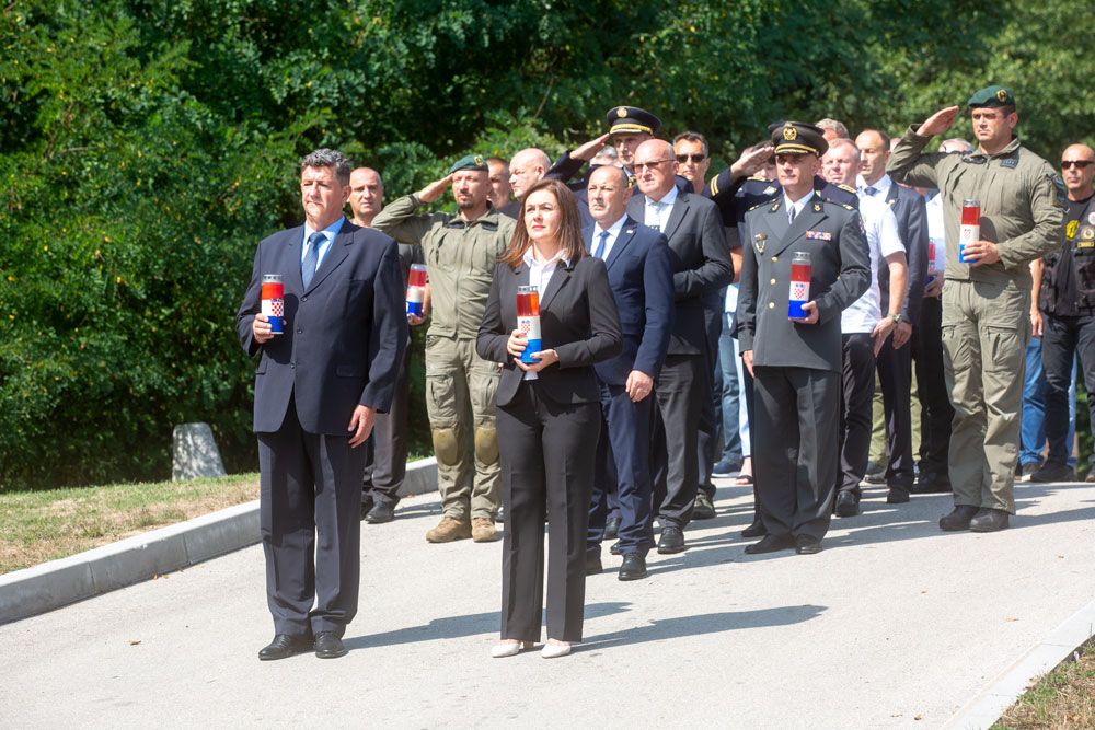 Vijence u čast poginulim herojima najprije su položile njihove obitelii, a nakon toga su slijeila izaslanstva Predsjednika RH koje je predvodio savjetnik Predsjednika general Marijan Mareković, a u ime Vlade RH, zatim MUP-a i Glavnog stožera OS ministar branitelja Tomo Medved. U ime Hrvatskog sabora počast poginulima odali su saborski zastupnici Anita Pocrnić Radošević i general Željko Sačić. Župan Ernest Petry također se poklonio poginulim policajcima, kao i gradonačelnik Grada Gospića sa zamjenicom Kristinom Pršom. Svojim poginulim kolegama poklonili su se predstavnici Policijskih uprava primorsko-goranske i ličko-senjske, zatim izaslanstvo Grada Rijeke te brojne Udruge proistekle iz Domovinskog rata s područja Rijeke i Gospića.