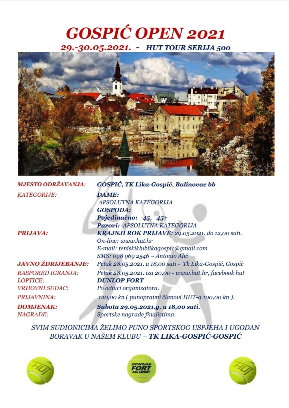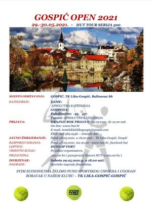 Danas na teniskom terenu Balinovac počeo je GOSPIĆ OPEN 2021 HUT (Hrvatska Unija Tenisača) TOUR SERIJA 500.