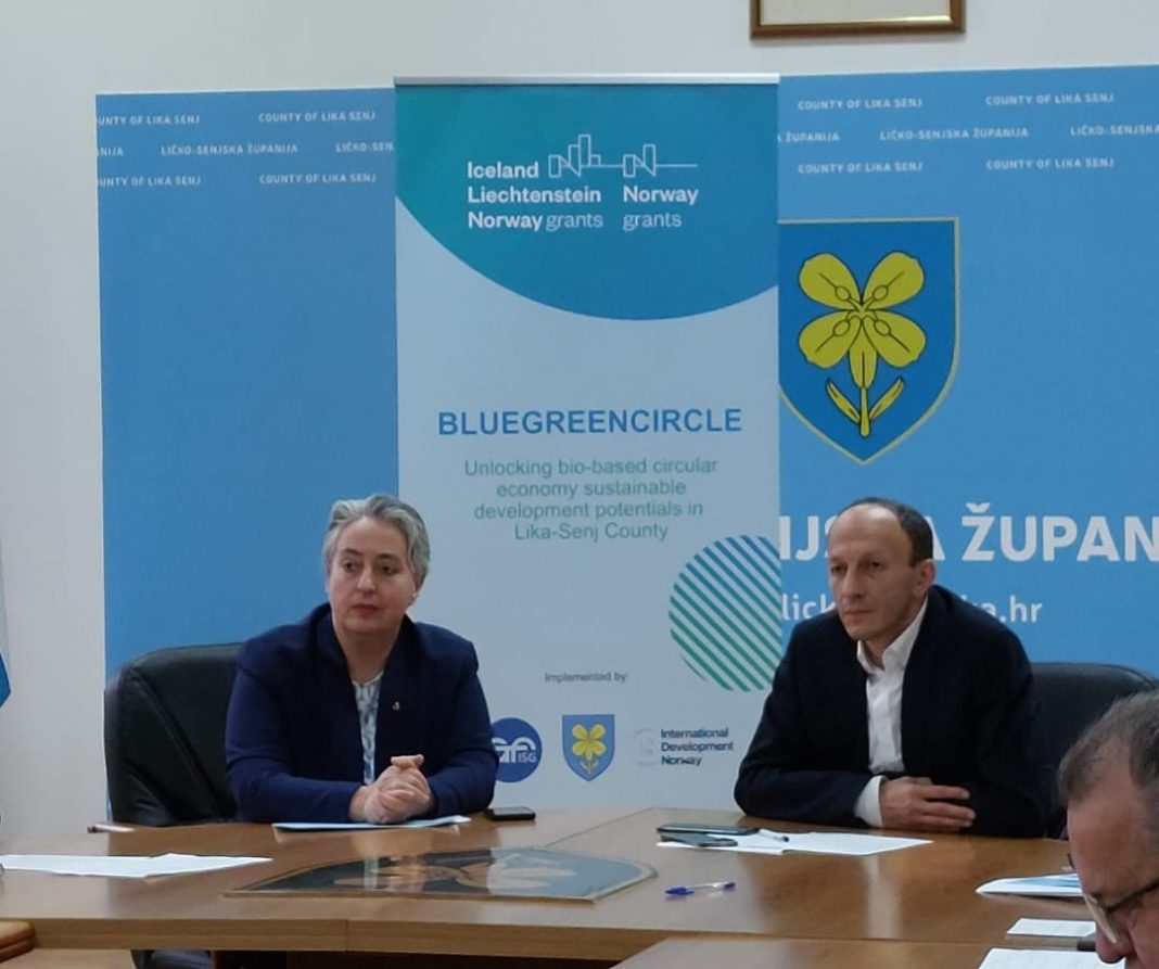 GOSPIĆ – Danas je u Gospiću u Dvorani za sastanke Ličko-senjske županije održana početna konferencija projekta Plavo-zeleni krug (BLUEGREENCIRCLE – Unlocking bio-based circular economy sustainable development potentials in Lika-Senj County). Nositelj projekta je udruga GTF-Inicijativa za održivi rast, a partneri su Ličko-senjska županija i International Development Norway Association iz Norveške.
