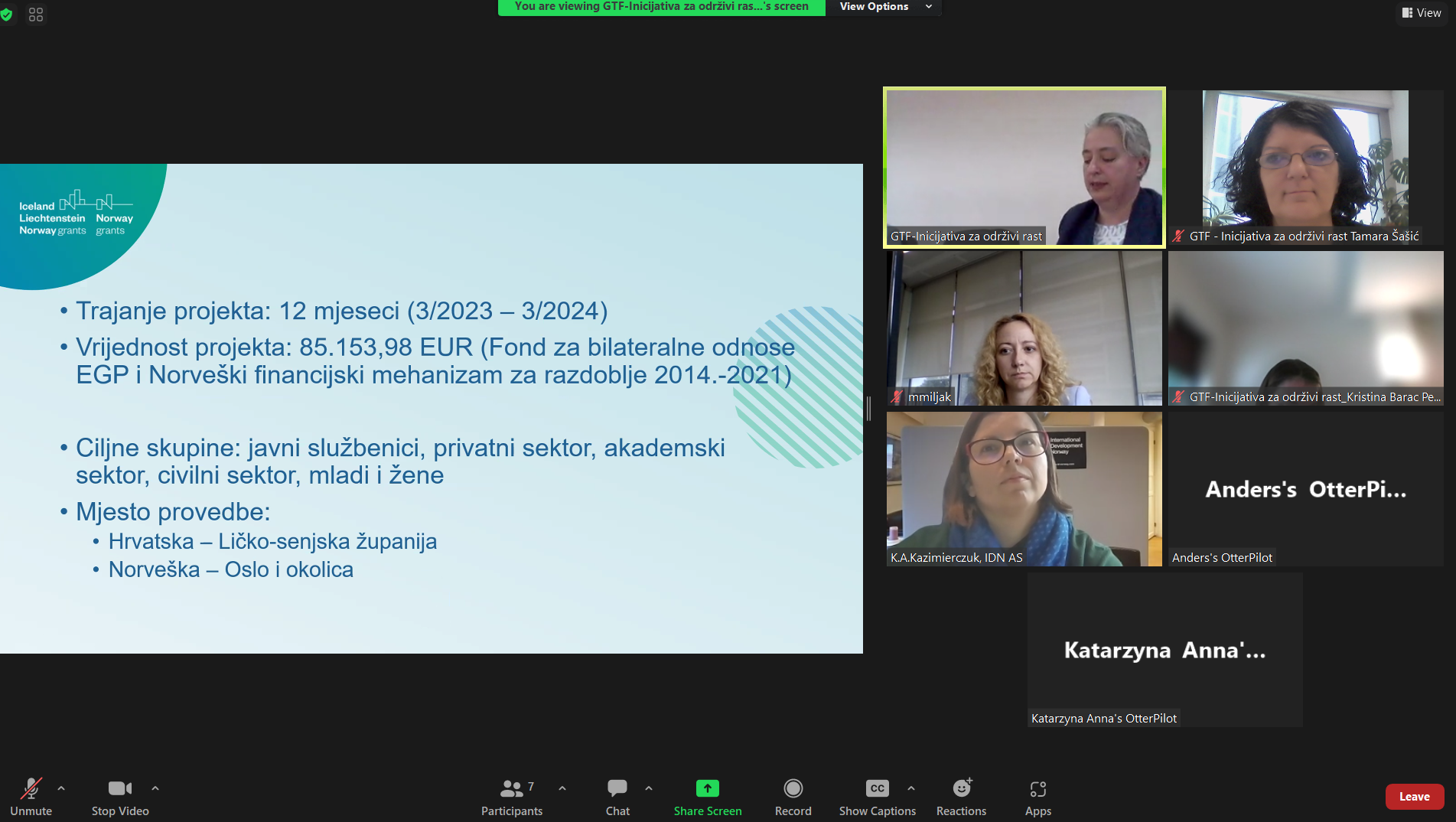 Župan Petry izrazio je zadovoljstvo što je Ličko-senjska županija partner na ovome projektu koji će imati veliki značaj za gospodarstvenike na njezinu području. Rukavina Cipetić naglasila je da ovim projektom Ličko-senjska županija postaje prva županija koja uspostavlja institucionalnu infrastrkturu za plavo-zeleno, odnosno kružno gospodarstvo. U ime norveškog partnera govorila je gđa Kazimierczuk koja je istaknula da je IDNA ponosna na započetu suradnju u sklopu projekta Plavo-zeleni krug, da će poticati komunikaciju i suradnju između Hrvatske i Norveške te da se nadaju da će pomoću dionika iz područja biogospodarstva stvoriti prilike za uspješnu suradnju i učenje. International Development Norway Association istraživački je centar koji provodi brojne projekte u području kružne ekonomije, zelene energije, poduzetništva, obrazovanja, društvene inkluzije, inovacija i sl. IDNA stručnjaci iz različitih područja doprinose razvoju inovativnih i održivih lokalnih ekonomija diljem svijeta.