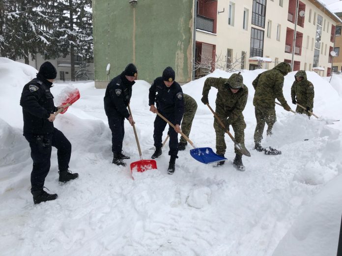 Ubrzo nakon što je jučer potpredsjednik Vlade i ministar obrane Damir Krstičević donio odluku da se vojska uključi u uklanjanje posljedica snježnog nevremena, u poslijepodnevnim satima, policijskim službenicima Policijske postaje Donji Lapac u čišćenju snijega pristiglo je u pomoć 26 pripadnika vojske. Policija je vojnicima pružila smještaj u policijskom stacionaru u Donjem Lapcu, a sa čišćenjem snijega zajednički nastavljaju i danas.