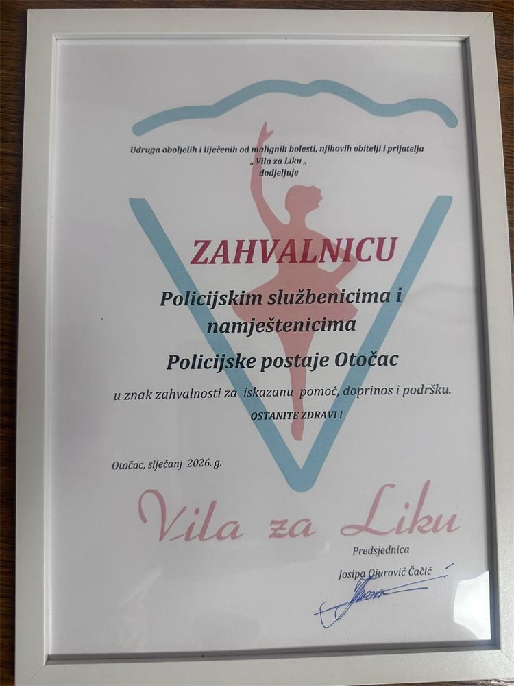 Tom prigodom policijski službenici, državni službenici i namještenici pokazali su humanost i veliko srce plavaca te su Udruzi Vila za Liku uručili dragovoljno prikupljena novčana sredstva namijenjena radu udruge koja djeluje na području pomoći i podrške oboljelim ženama od malignih bolesti.
