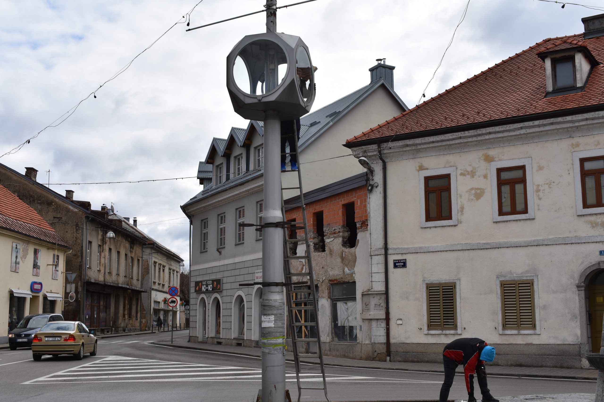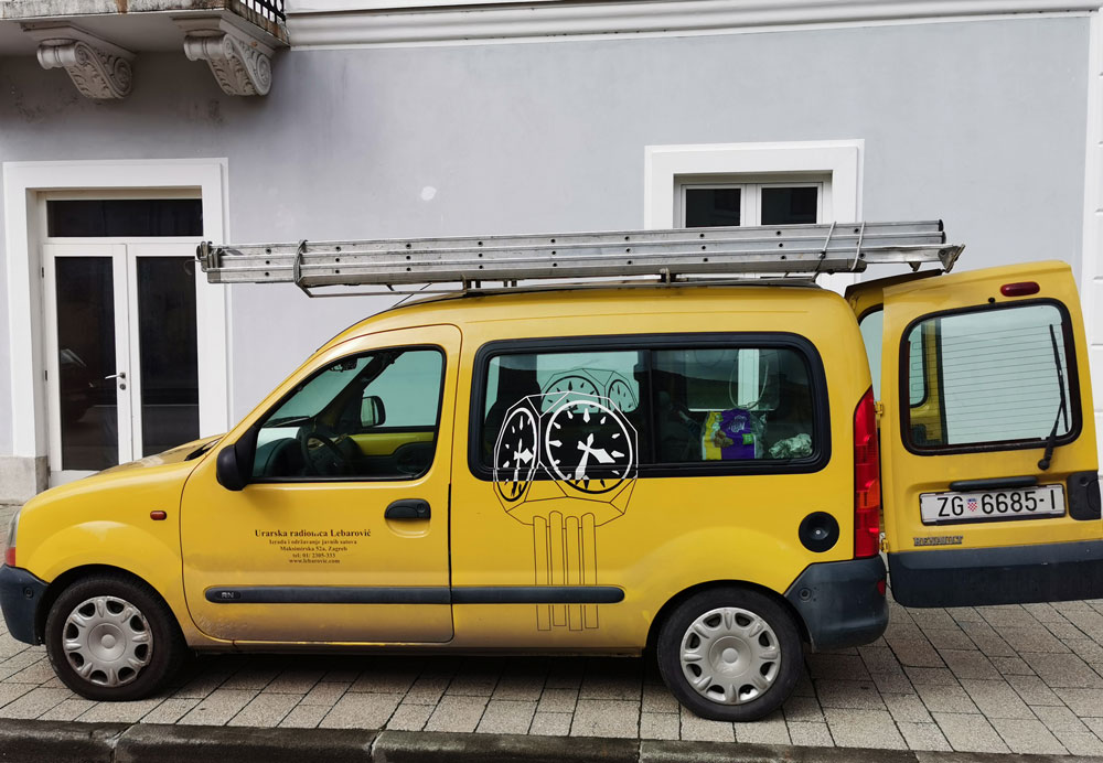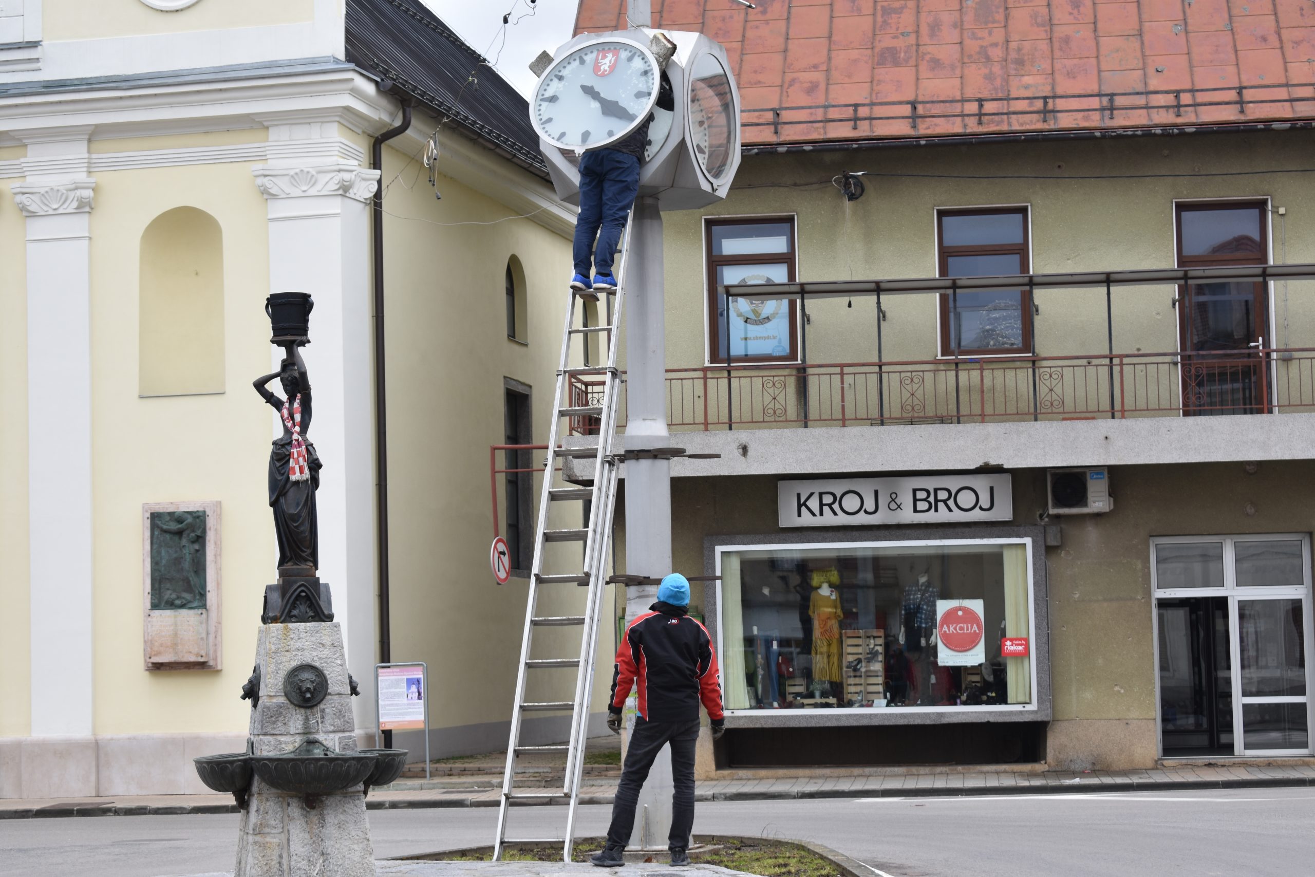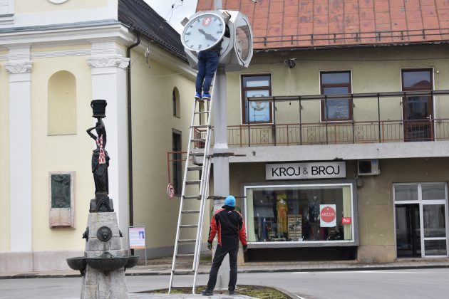Od jutros se stručni tim zagrebačke tvrtke Lebarović uhvatio „u koštac“ s javnim satovima u Gospiću. Sat u središtu grada kod katedrale bio je tema našeg pisanja protekloga vikenda. Sat je već dugo vremena pokazivao vrijeme od 4.20 h ili 16.20. Točno barem dva puta na dan.